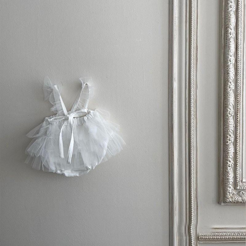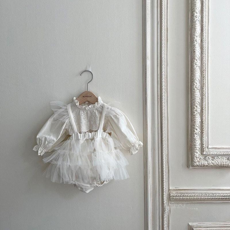 Ropa infantil estilo coreano ins Primavera y Otoño Bebé Niña Bebé Princesa Lindo Mono de Malla con Tirantes y Cubrepañal