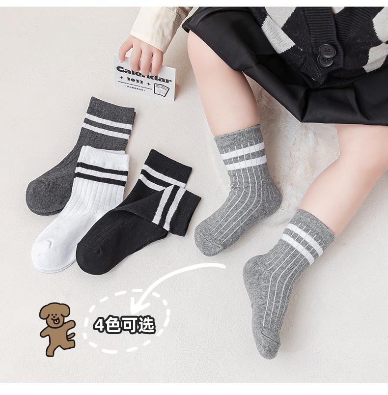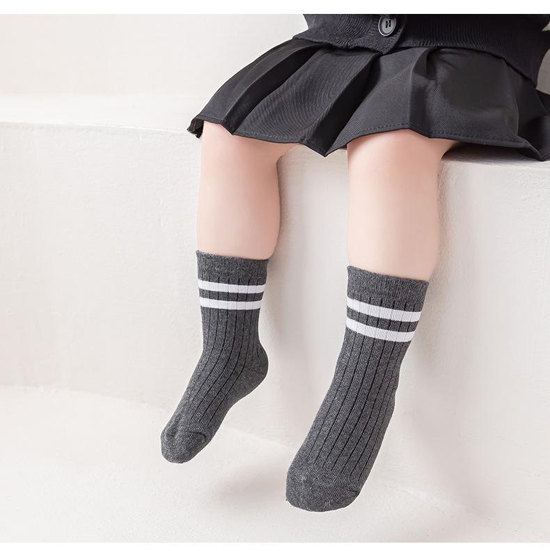 Calcetines para niños Calcetines para niños de primavera y otoño Calcetines medianos y grandes para niños Calcetines de algodón a rayas para bebés Calcetines deportivos blancos para estudiantes de primaria