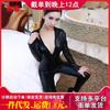 Lencería sexy de charol, corsé de una pieza, ropa de cuero de reina con entrepierna abierta, traje, uniforme de actuación en discoteca, tentación