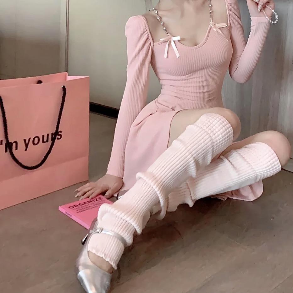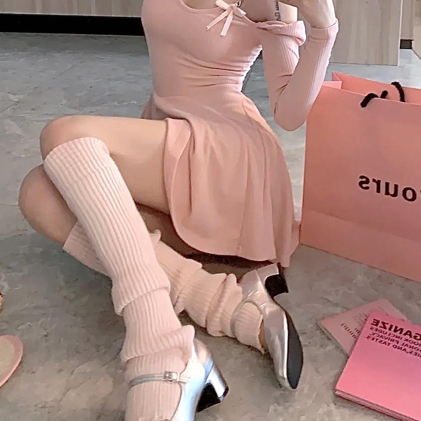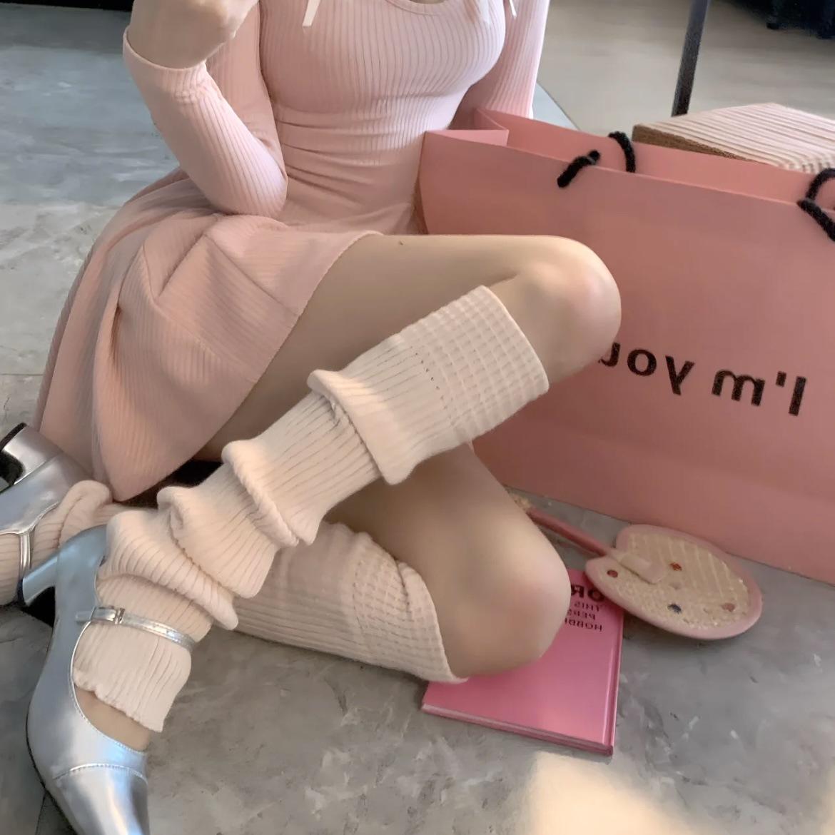 Calcetines de punto de otoño e invierno para mujer, conjuntos de piernas engrosadas, calcetines de pila Lolita, calcetines cálidos hasta la mitad de la pantorrilla, calcetines de pantorrilla blancos japoneses JK