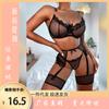 Conjunto de lencería sexy femenina europea y americana al por mayor con tirantes de lazo de encaje negro de tres puntos tentación