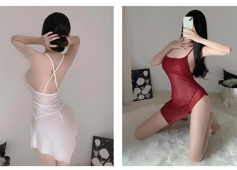Lencería sexy, camisón con tirantes, transparente, fino, sin mangas, pijama, pasión, pecho pequeño, uniforme de una pieza, entrega