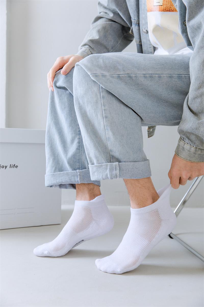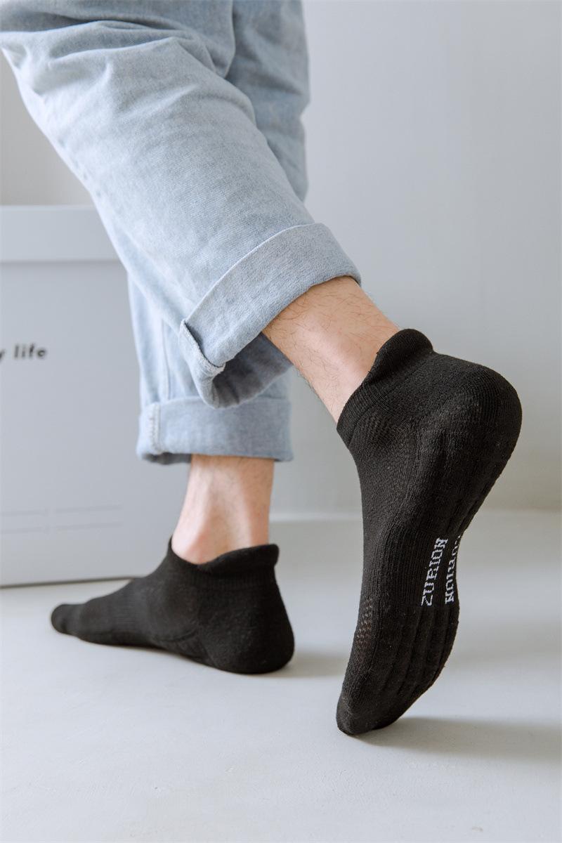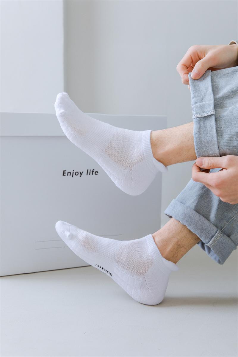 Calcetines para hombre calcetines de barco verano malla transpirable calcetines invisibles de corte bajo absorbentes de sudor fondo de toalla calcetines deportivos calcetines con letras en blanco y negro