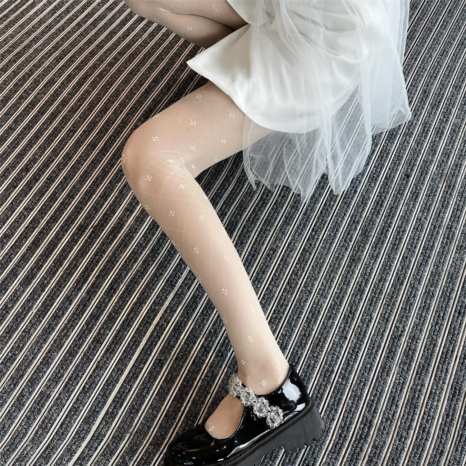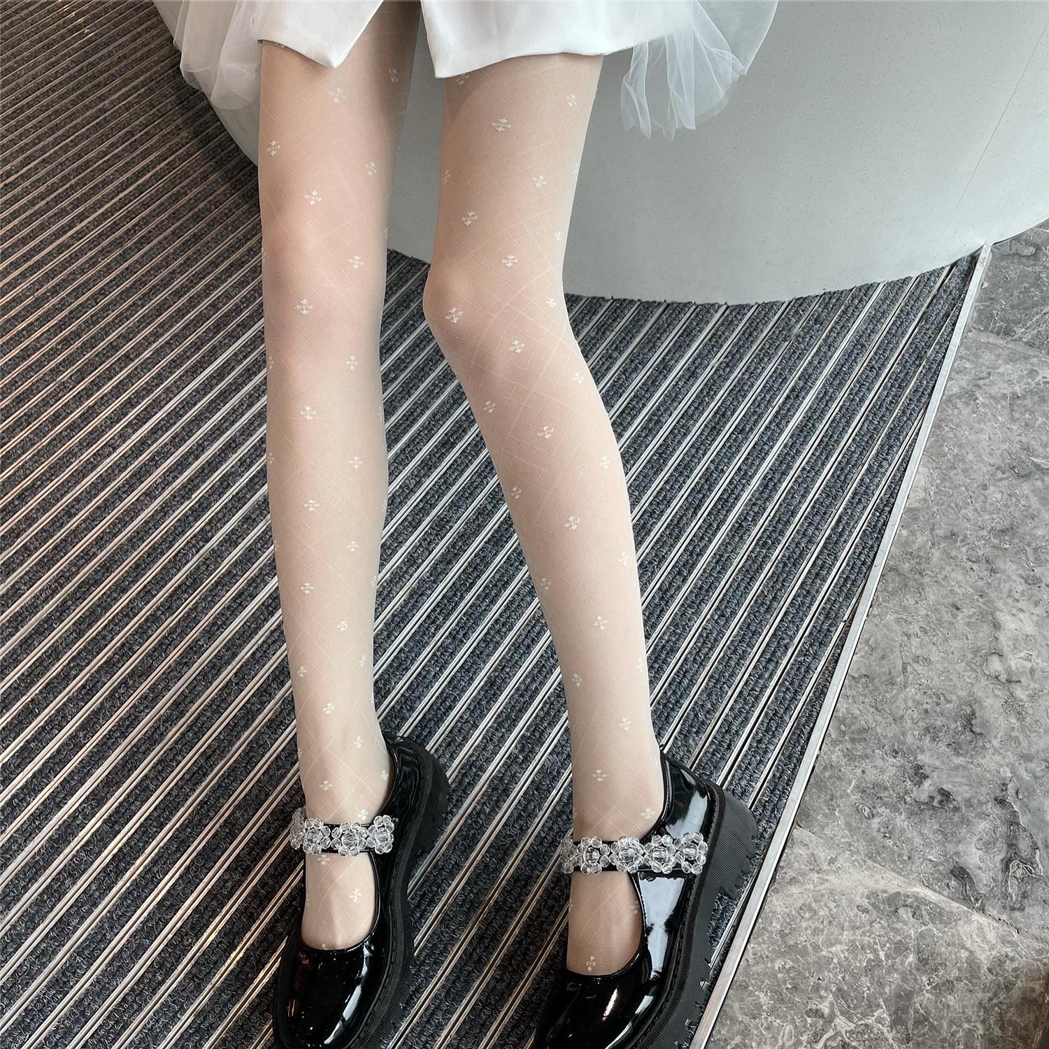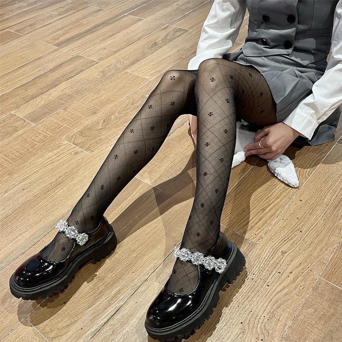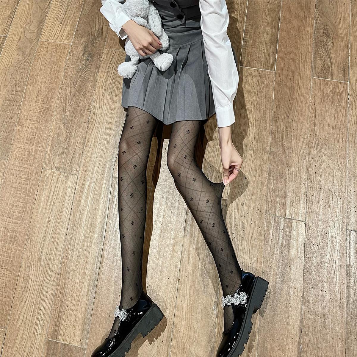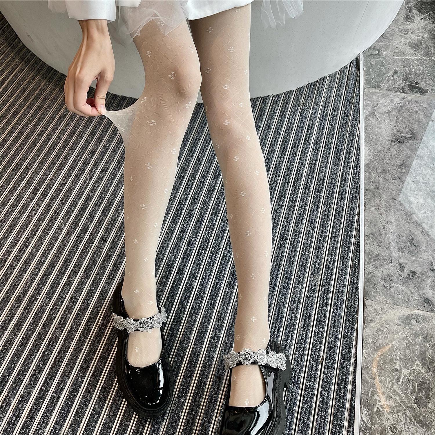 Compra Leche y deseo medias jacquard de trébol de cuatro hojas blanco leche vintage japonés pantimedias ultrafinas de seda hilada con núcleo seda negra al por mayor en Joom.pro