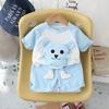 Traje de verano para niños 2024, nuevo estilo occidental, ropa de dos piezas de manga corta con dibujos animados para bebés, ropa bonita y moderna para niños.
