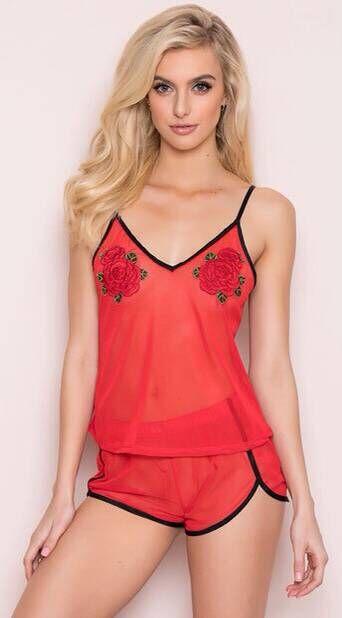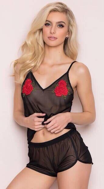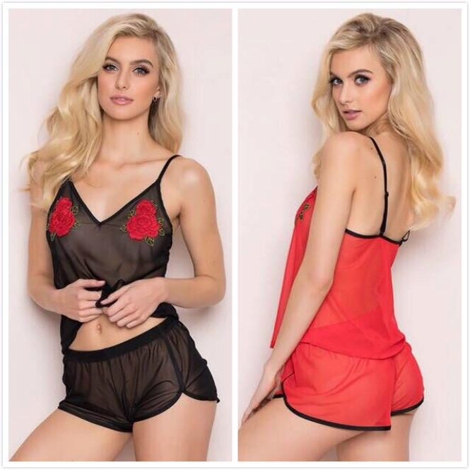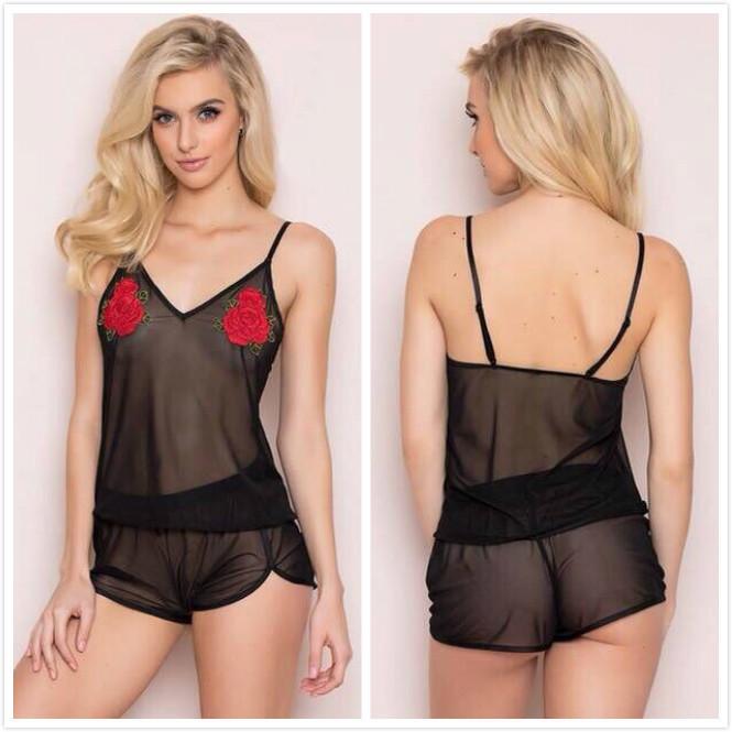 Compra Lencería sexy europea y americana de comercio exterior 2020, perspectiva negra, malla bordada, lindo pijama sexy, pantalones cortos, camisón, traje al por mayor en Joom.pro