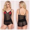 Lencería sexy europea y americana de comercio exterior 2020, perspectiva negra, malla bordada, lindo pijama sexy, pantalones cortos, camisón, traje