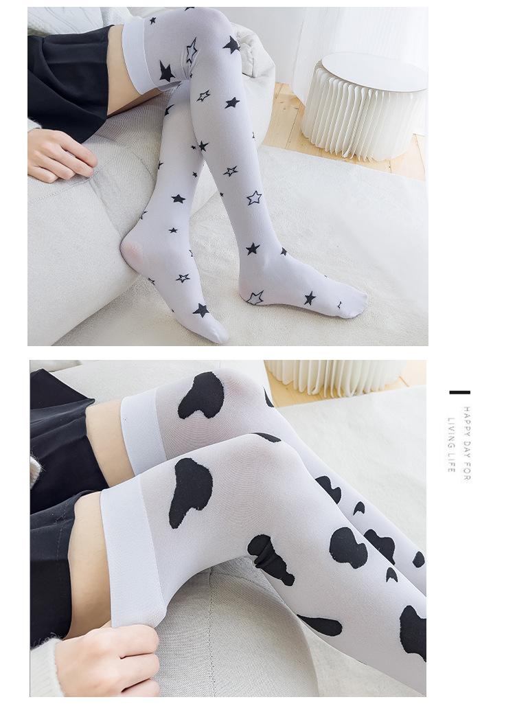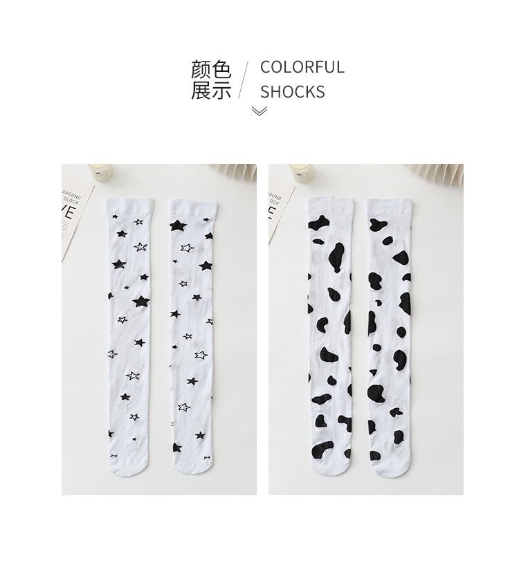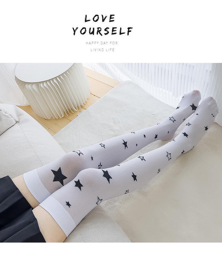 Compra Medias para mujer, nuevas JK, lindas medias por encima de la rodilla, con flores en blanco y negro, para niñas, calcetines con puños de moda para primavera y verano. al por mayor en Joom.pro