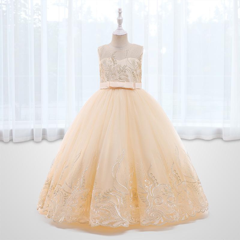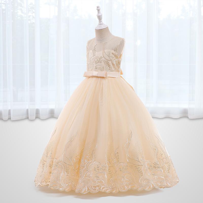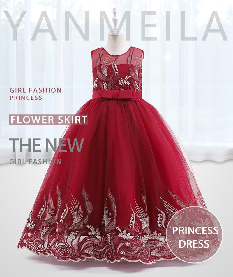 Vestido de Niña Falda Larga Falda de Princesa Ropa Infantil de Malla Puff para Niña Mediana y Grande Disfraz Largo de Anfitriona para Niña