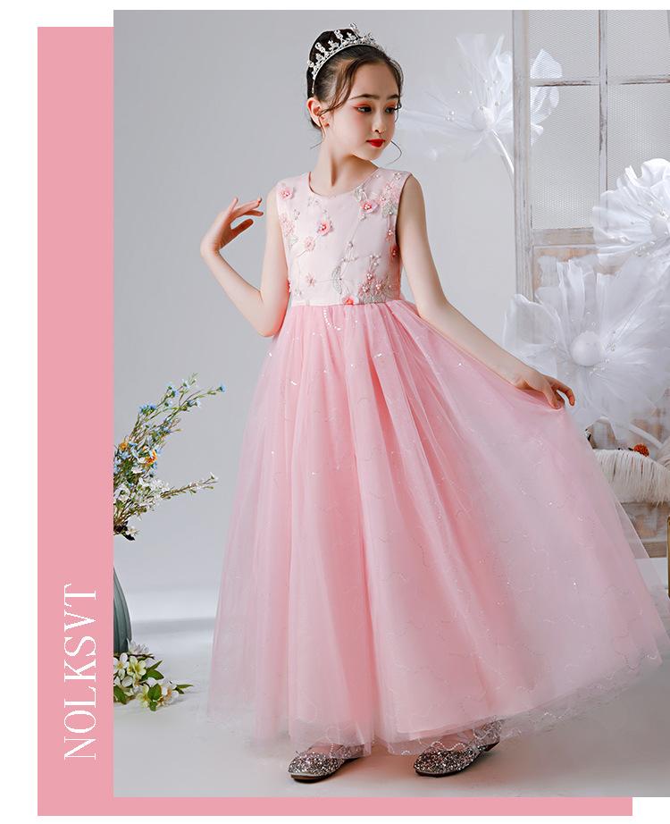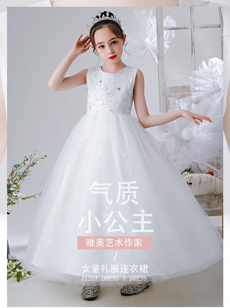 Vestido Largo de Niña Vestido de Princesa 2024 Verano Nuevo Vestido de Boda para Niños Traje de Actuación de Seis Días para Niños