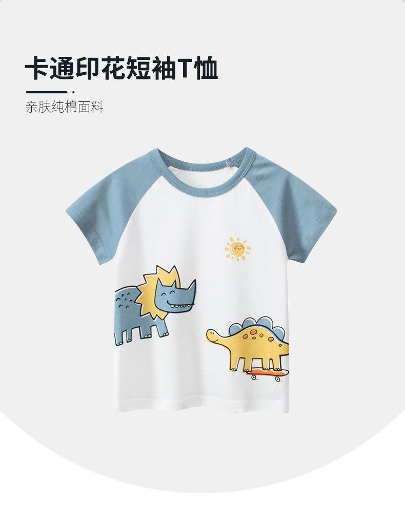27kids ropa coreana de verano para niños transfronteriza animal dinosaurio caricatura niños camiseta manga corta ropa de bebé al por mayor