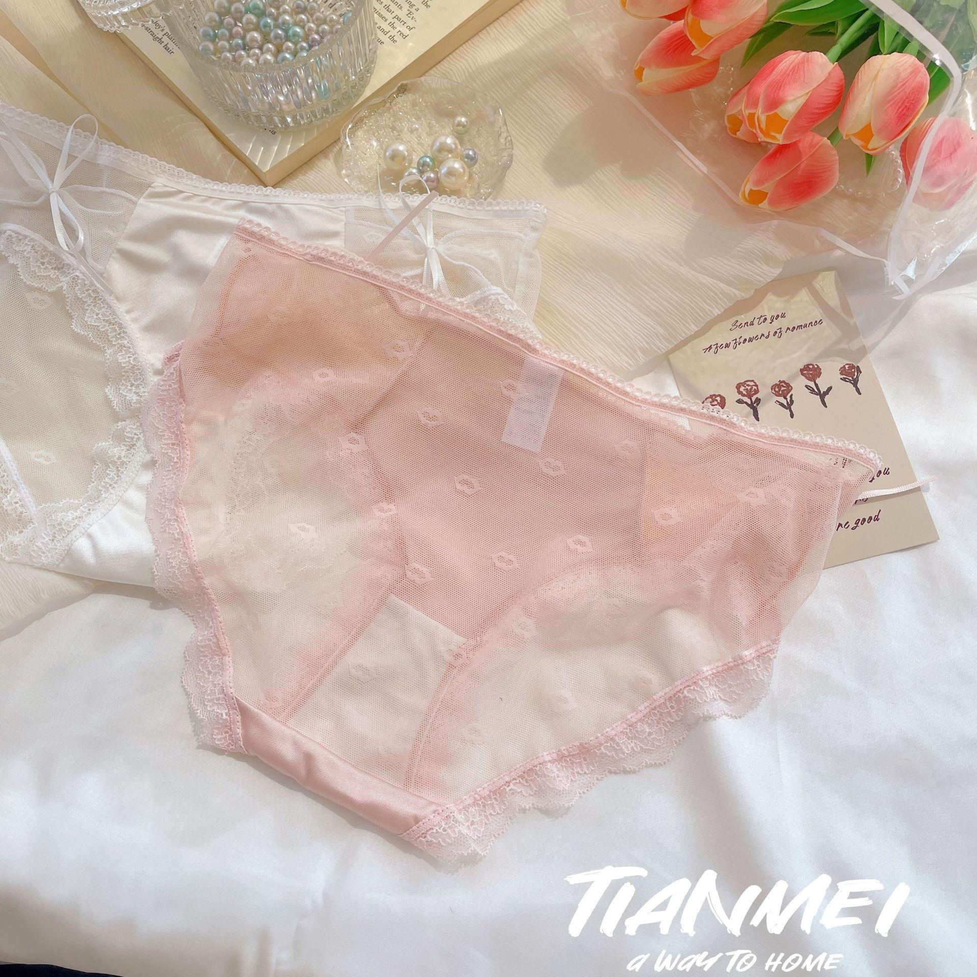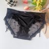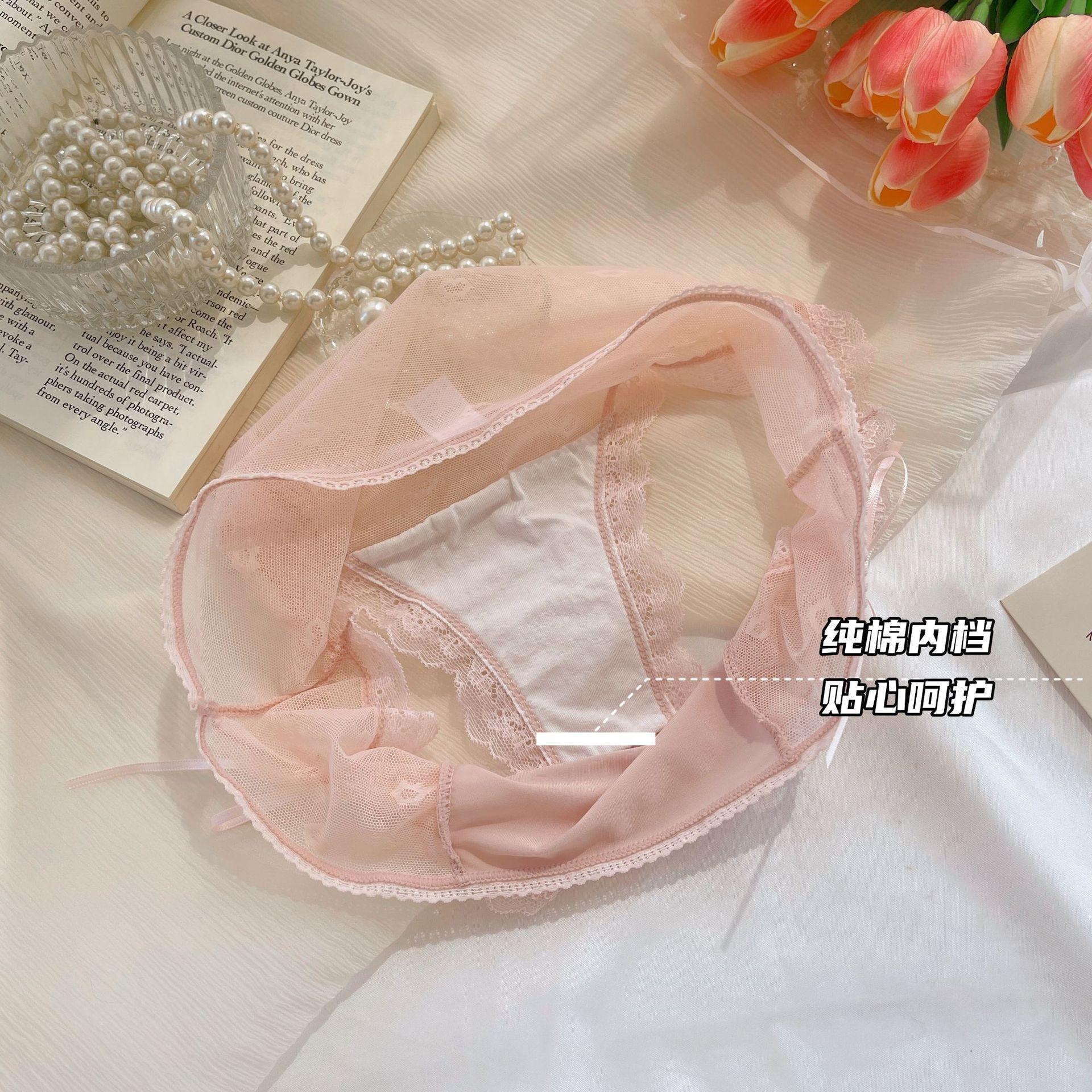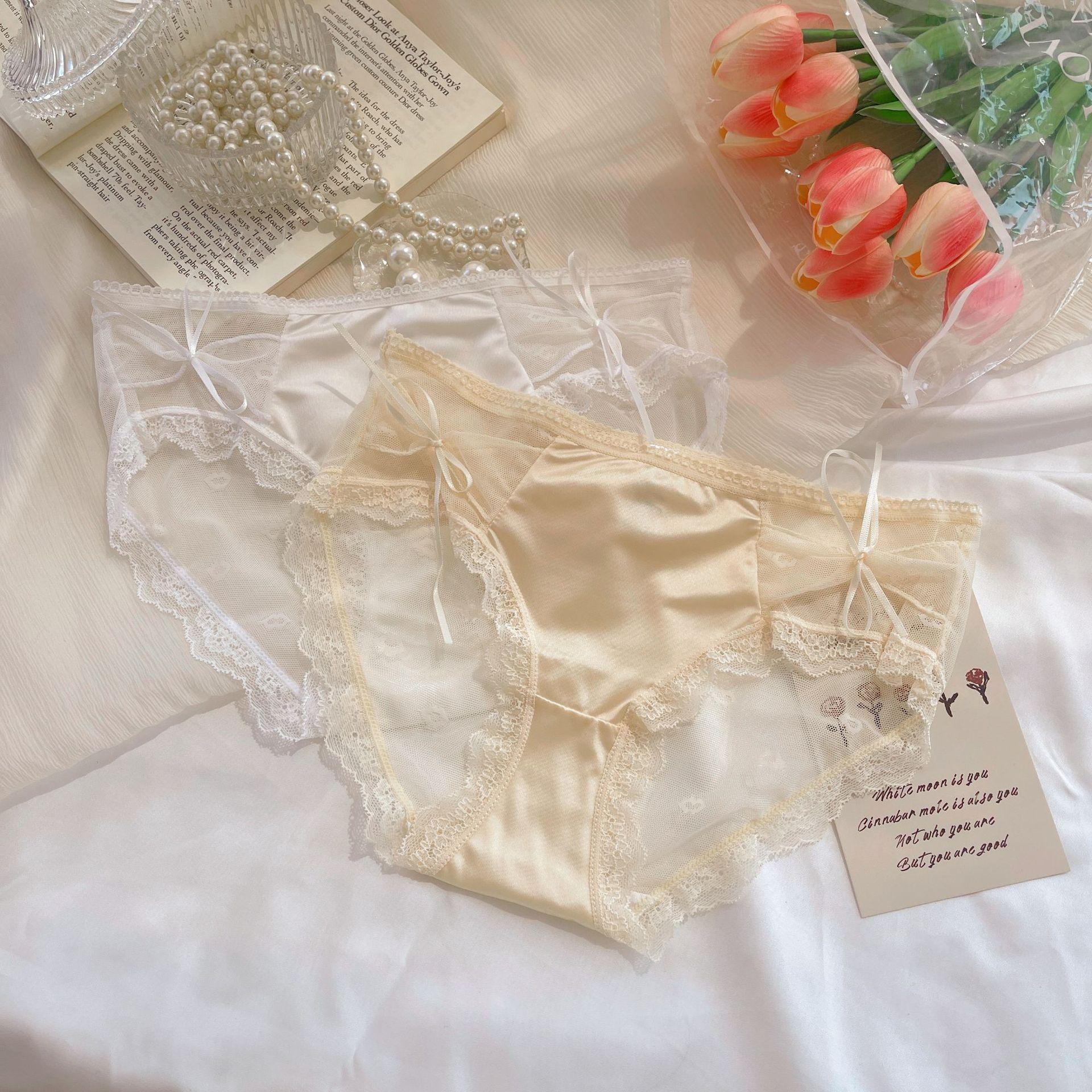 Ropa interior de encaje sexy para mujer, parte inferior de algodón con entrepierna, malla semitransparente, lazo, calzoncillos cómodos, pantalones cortos de cintura baja, cabeza de mujer