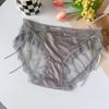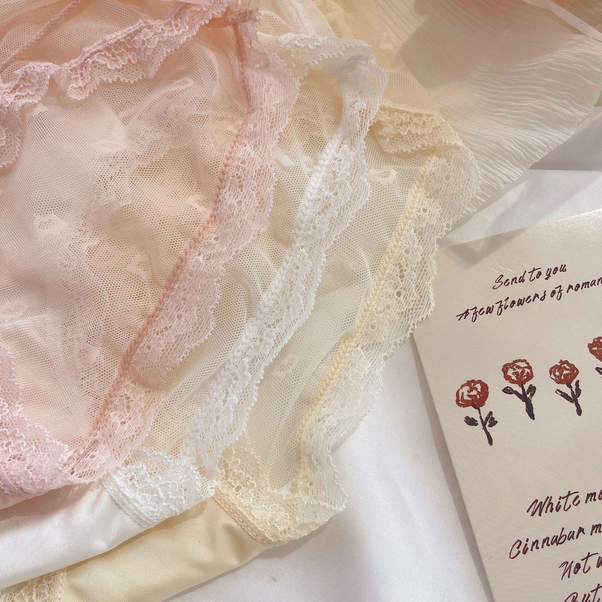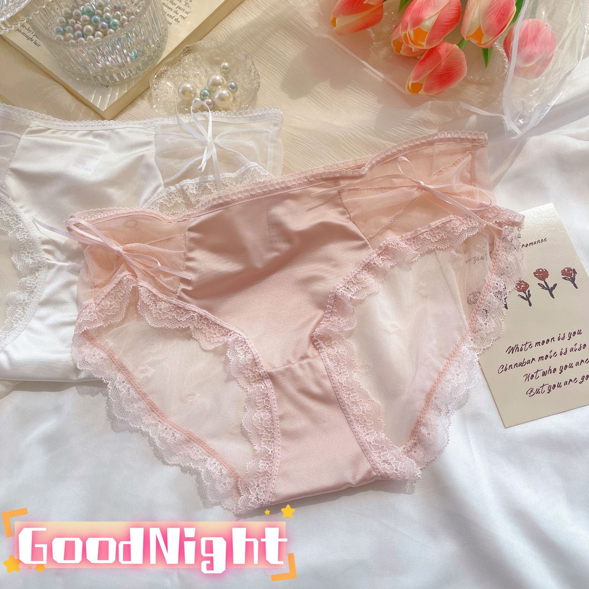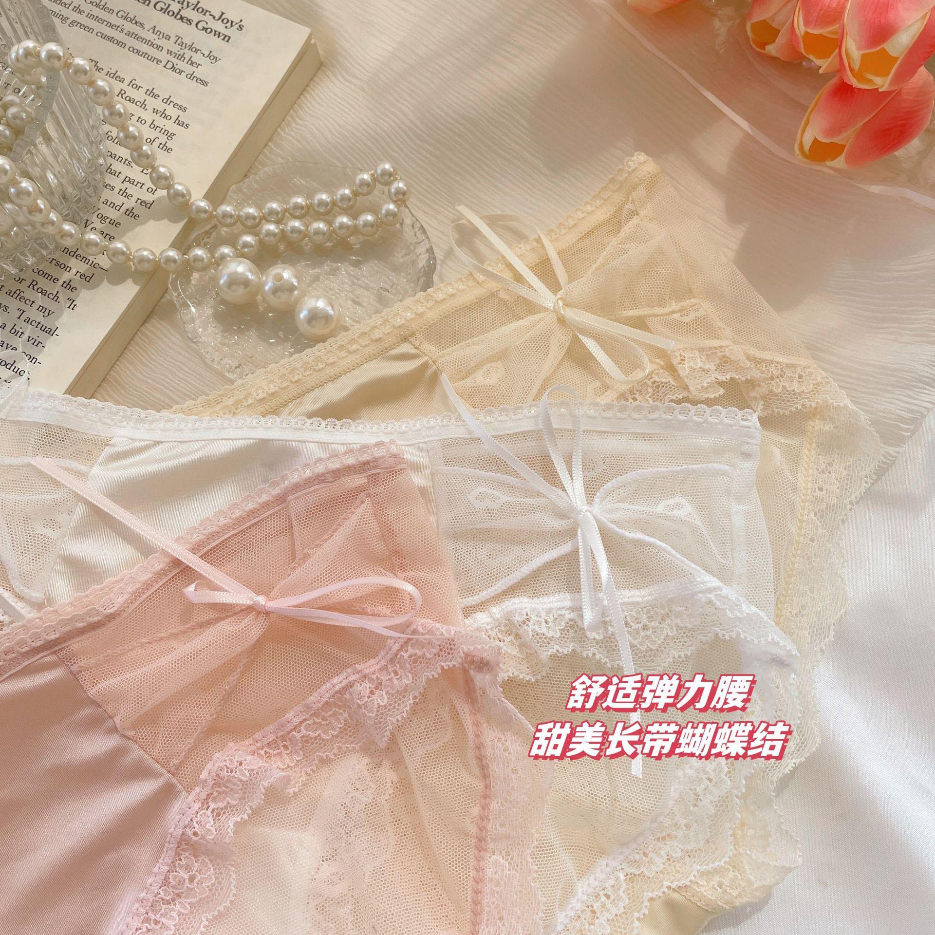 Ropa interior de encaje sexy para mujer, parte inferior de algodón con entrepierna, malla semitransparente, lazo, calzoncillos cómodos, pantalones cortos de cintura baja, cabeza de mujer