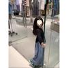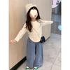 Traje para Niña Nuevo Primavera 2024 Bebé Niña Estilo Coreano Estilo Occidental Camiseta Básica Casual Jeans de Pierna Ancha Conjunto de Dos Piezas