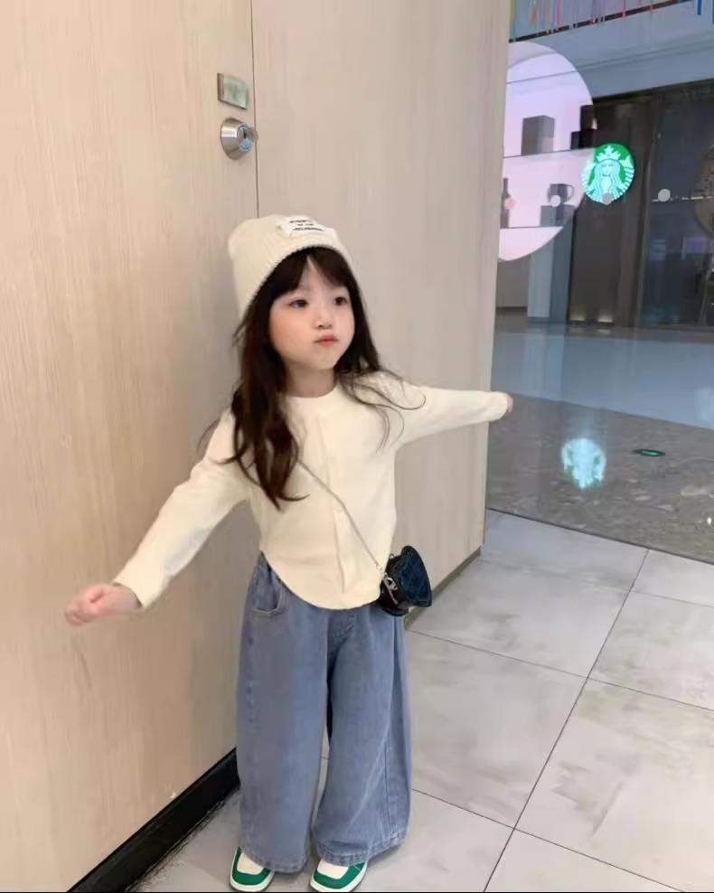 Compra Traje para Niña Nuevo Primavera 2024 Bebé Niña Estilo Coreano Estilo Occidental Camiseta Básica Casual Jeans de Pierna Ancha Conjunto de Dos Piezas al por mayor en Joom.pro