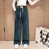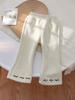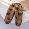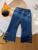 Pantalones casuales para niña estilo coreano con forro polar, pantalones gruesos bordados para bebé para invierno, estilo occidental que combinan con todo, pantalones acampanados de terciopelo de una pieza, moda