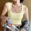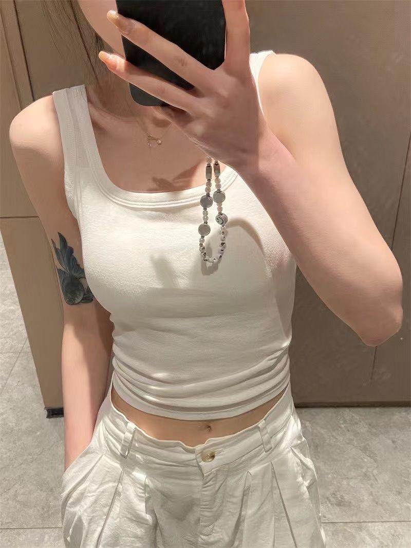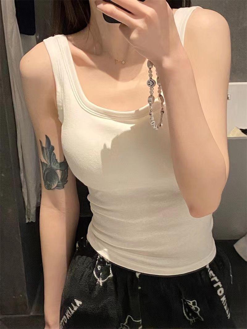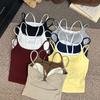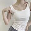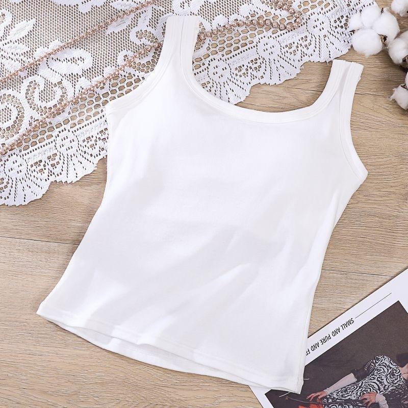 Chaleco de Verano Color Sólido Tirantes Combinable con Todo Almohadilla de Sujetador Ropa Interior Cuello Redondo Cubriente Accesorio Adelgazante de Busto Moda Casual Sin Mangas