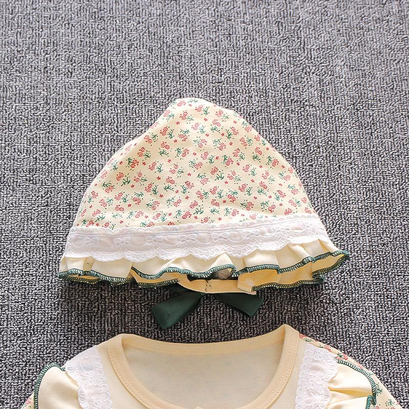 Beige [long sleeve floral] conjoined hat, Pink [long sleeve floral] conjoined hat