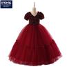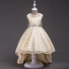 Vestido de cola para niños cuhk vestido de noche para niñas vestido de encaje vestido de princesa con flores diamante perla fiesta de cumpleaños
