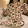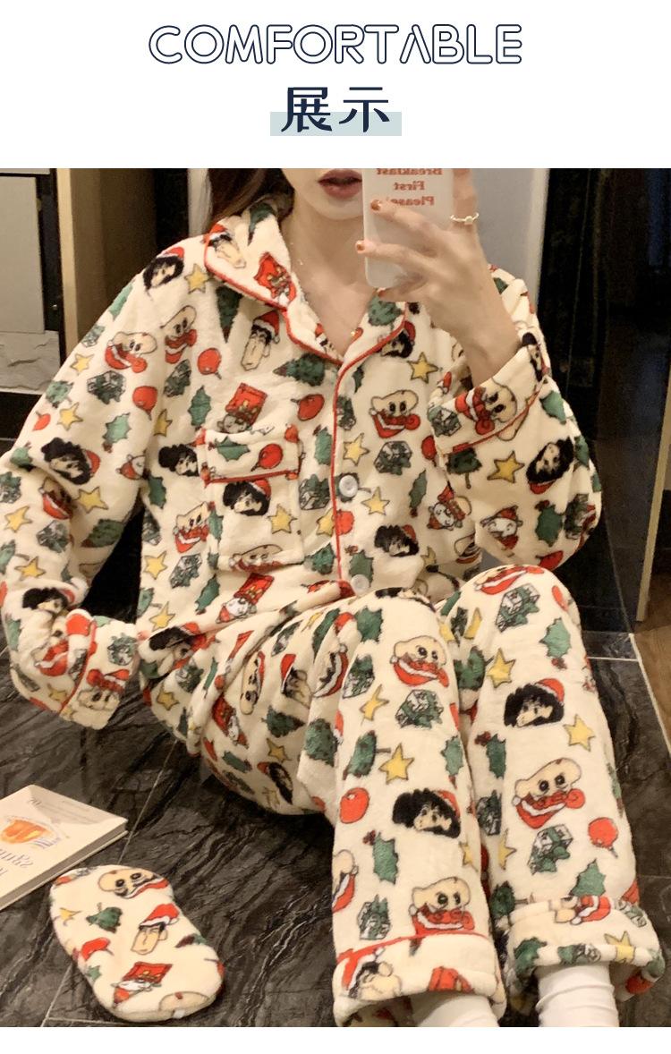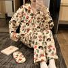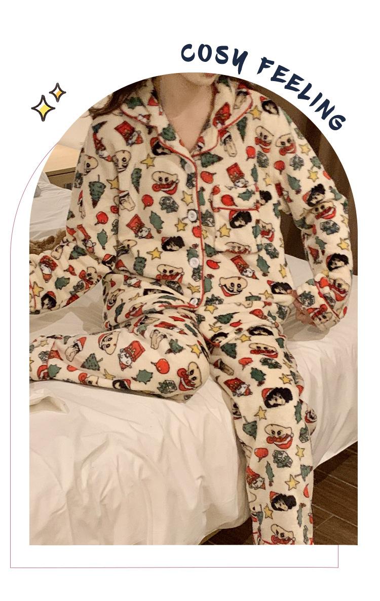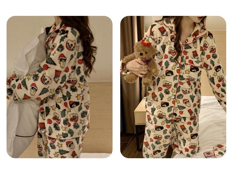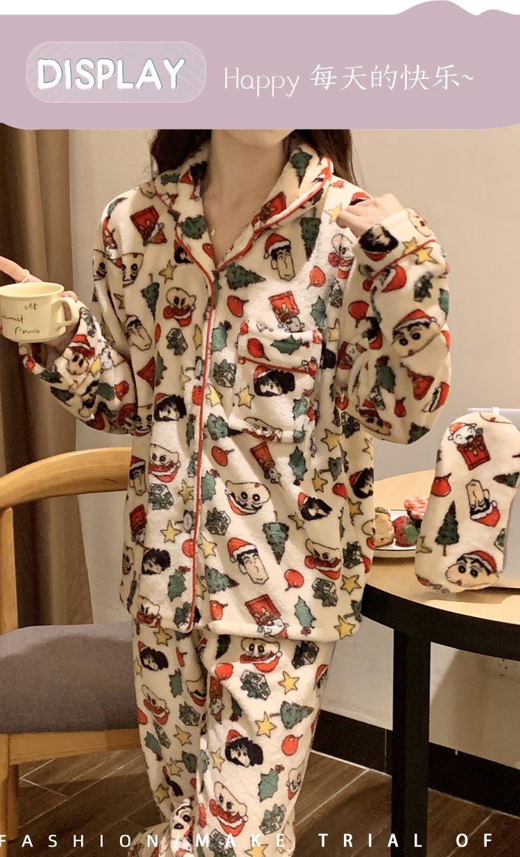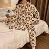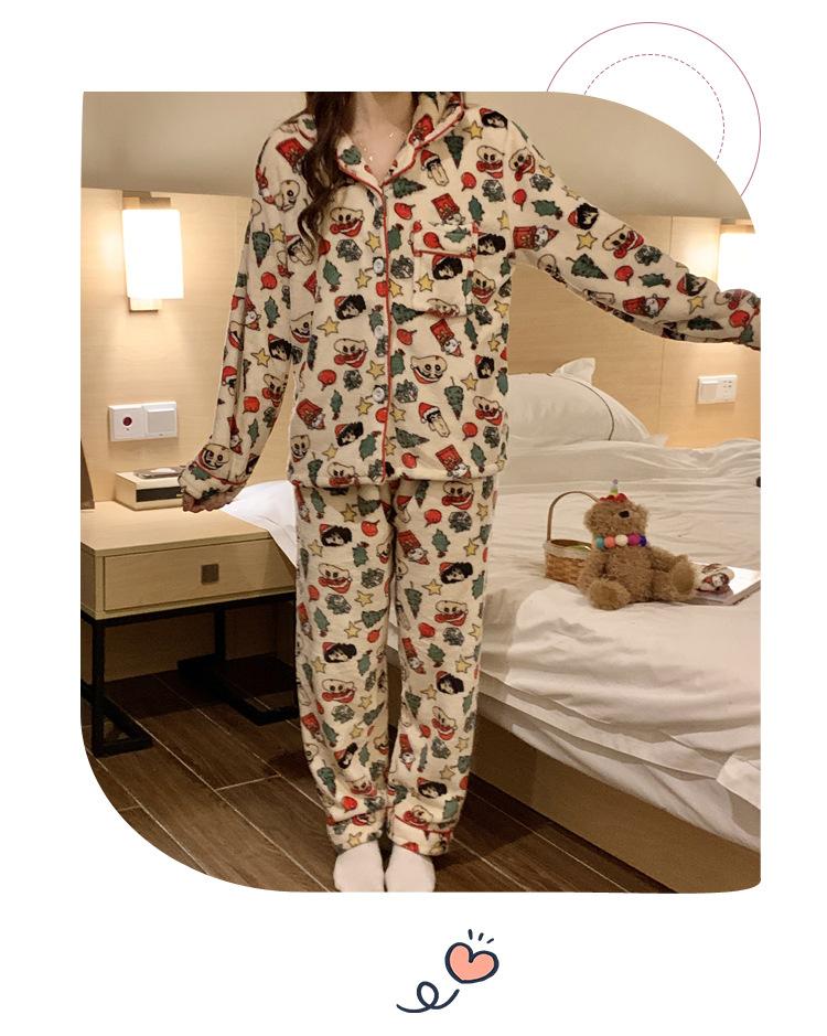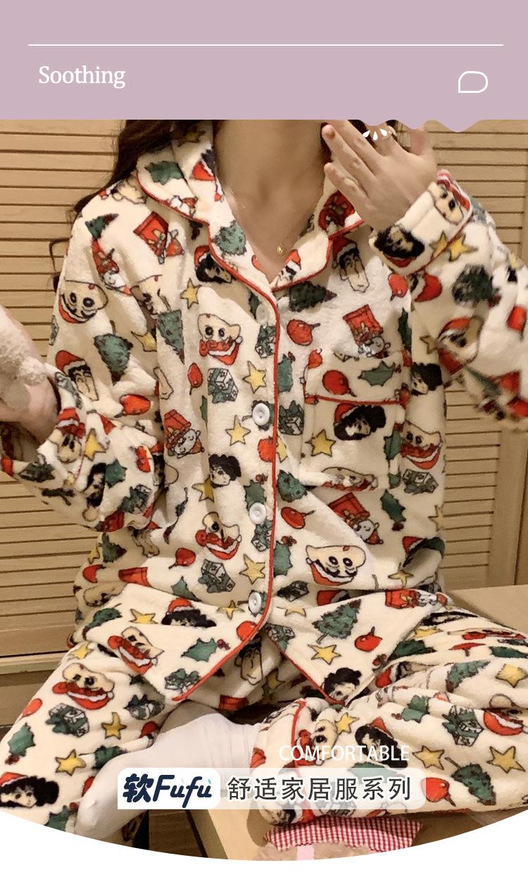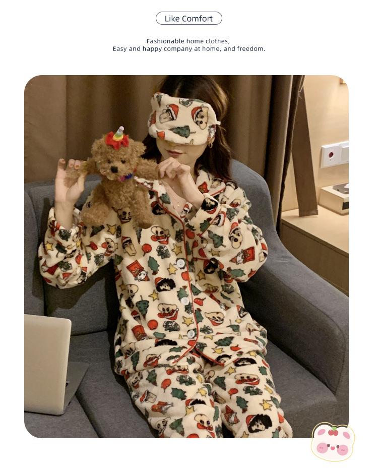 Compra Pijama de mujer de dibujos animados de invierno de franela de manga larga, cárdigan grueso de talla grande, traje de estilo coreano con banda para el cabello gratis al por mayor en Joom.pro