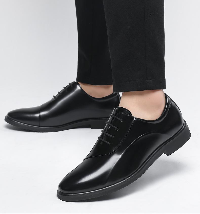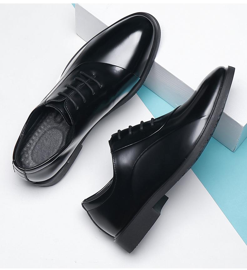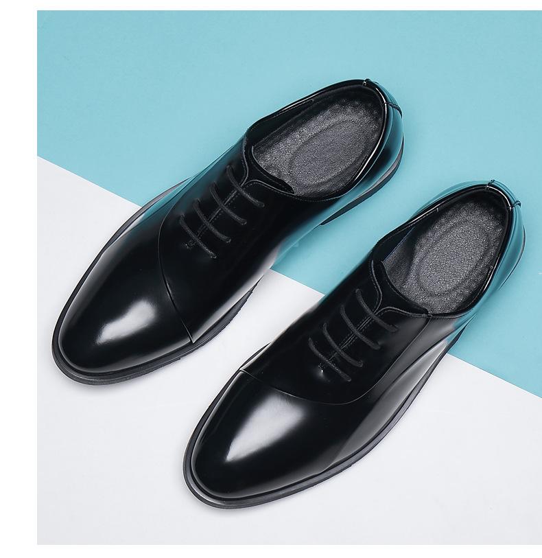 Zapatos de cuero para hombre, nuevos zapatos de vestir de negocios para hombre, estilo coreano, británicos, de punta puntiaguda, de moda, con suela suave y aumento de altura para novios y bodas.