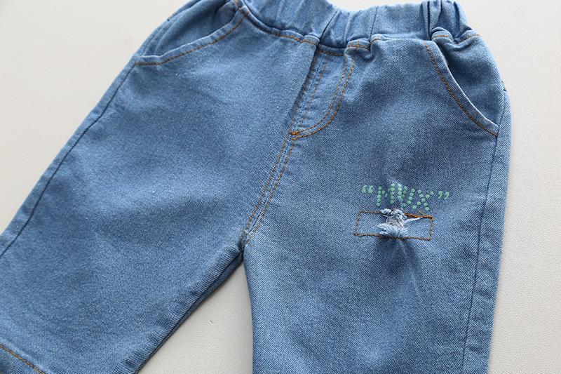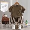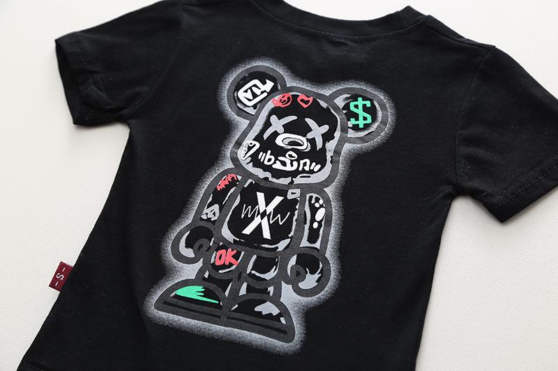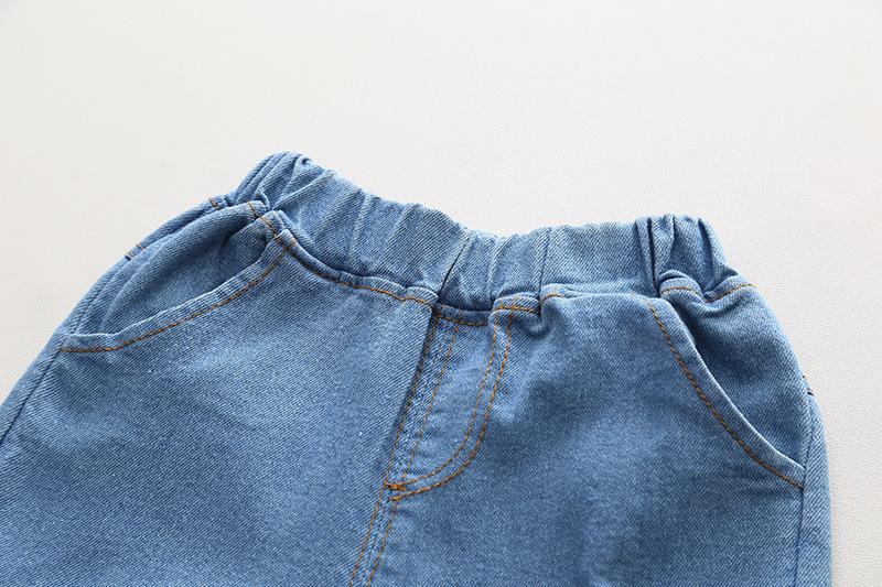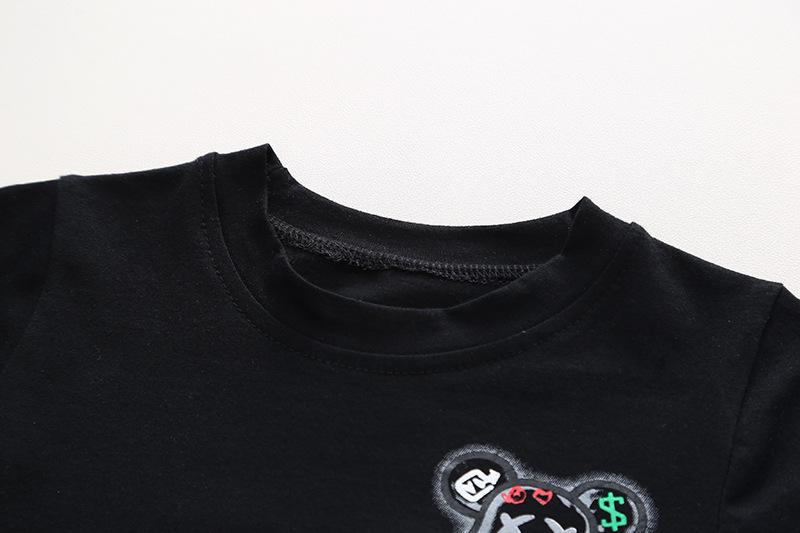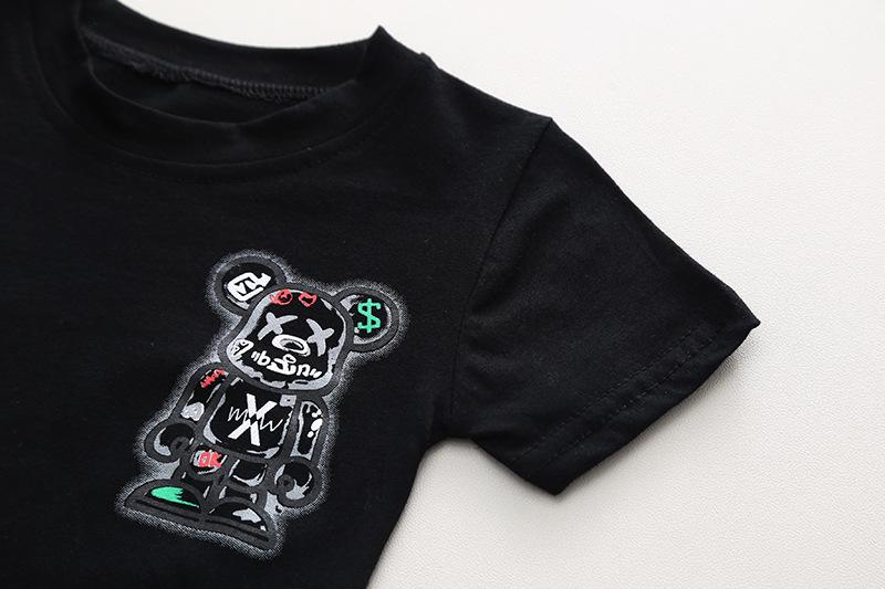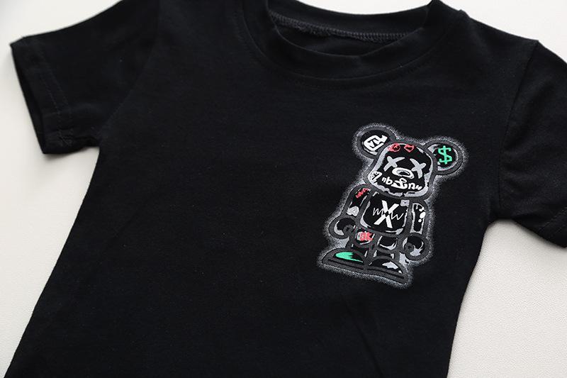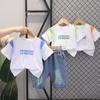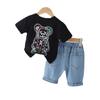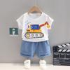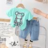 Conjunto de dos piezas de pantalones cortos vaqueros informales para niño, traje de manga corta con cuello redondo y dibujos animados para niño, verano 2023