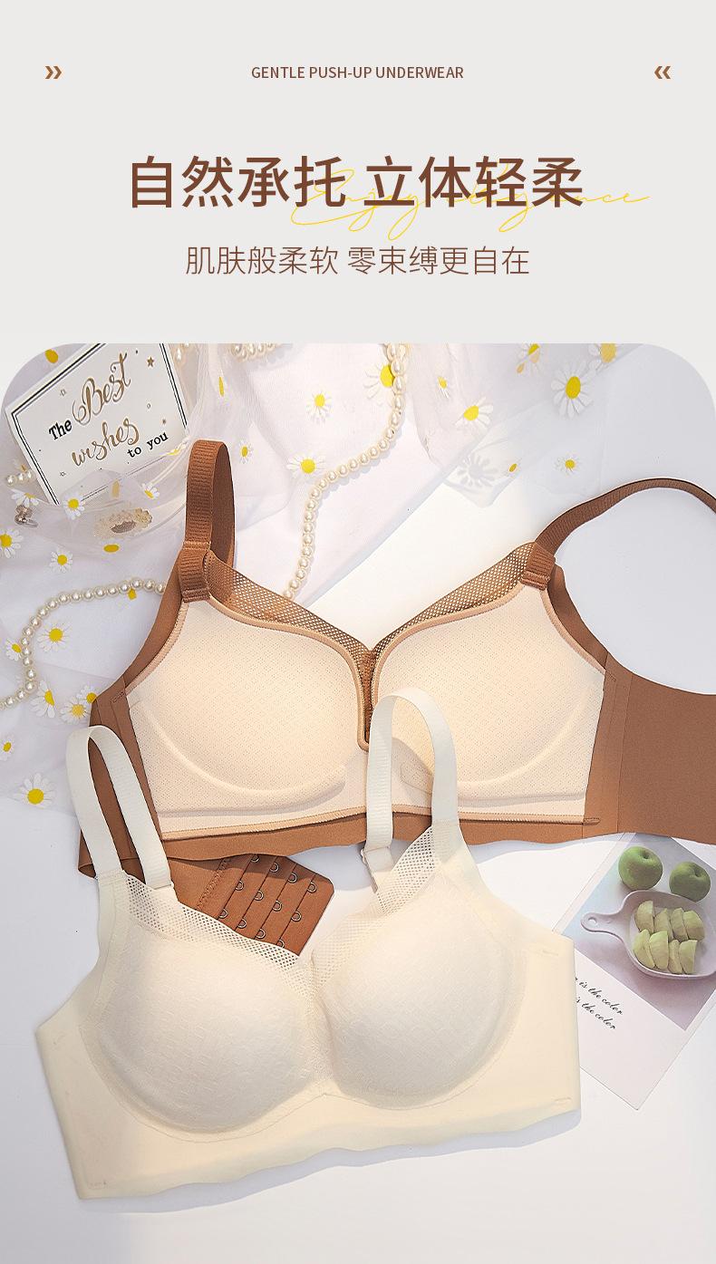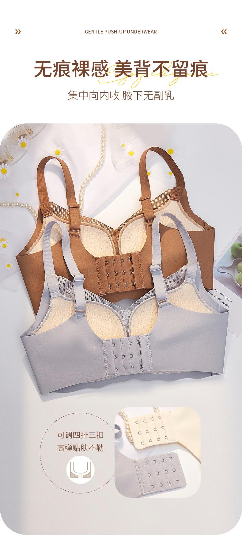 | Nueva y hermosa ropa interior trasera para mujer, fruncido sin costuras, cómodo sujetador con rosca sin aro de acero, almohadilla de copa mediana y larga con copa fija |