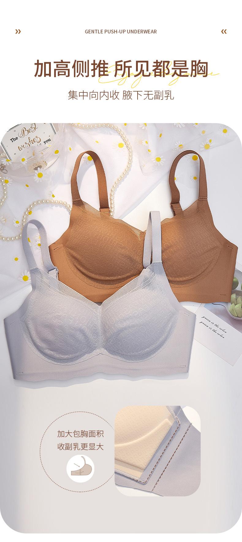 | Ropa interior de mujer con diseño de cómic que se expande hacia afuera, pechos pequeños que se ven grandes, cómoda y sin costuras, posavasos engrosado, transpirable, sin aros de acero, sujetador fruncido |