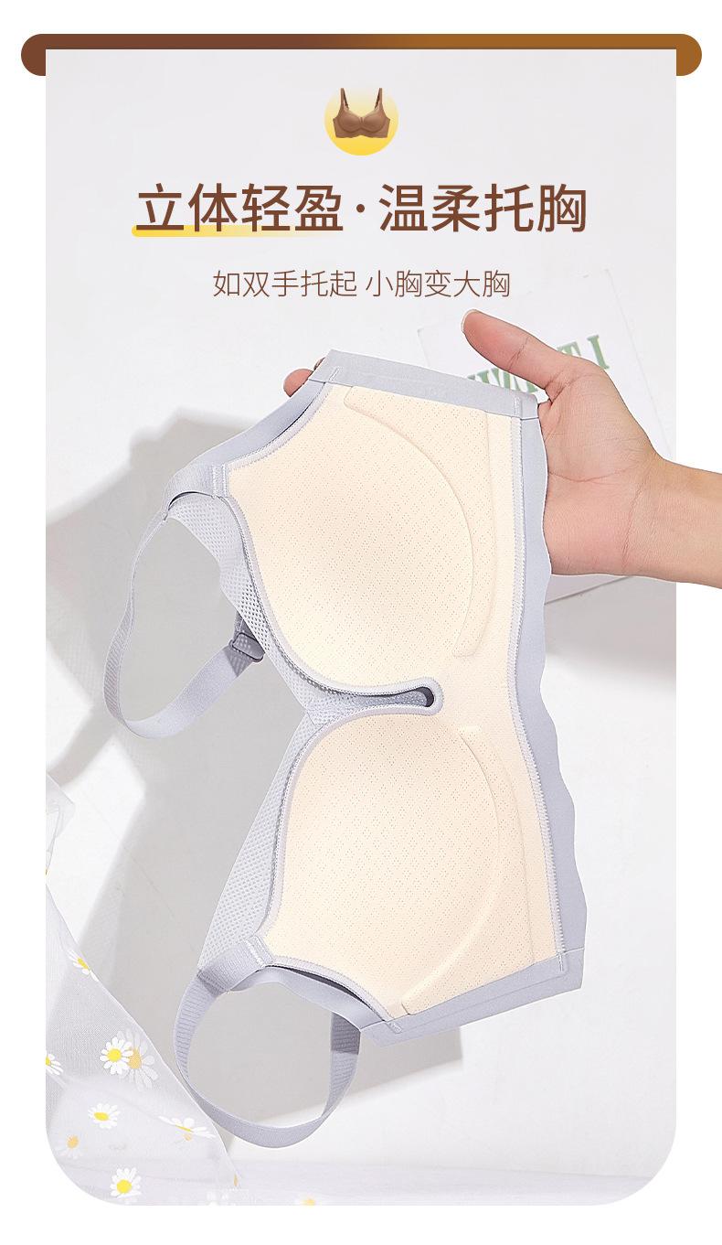 | Ropa interior fina de verano con copa fija sin costuras para mujer, camisola sin aros, chaleco de pecho grande, sujetador pequeño, transpirable y cómodo |