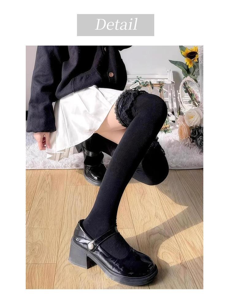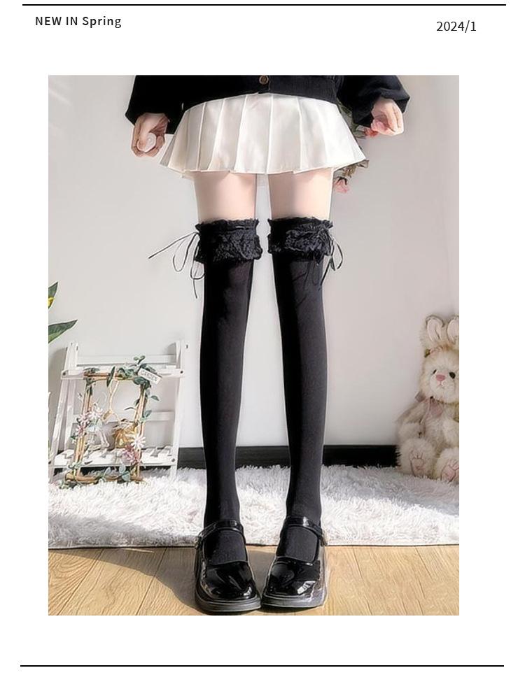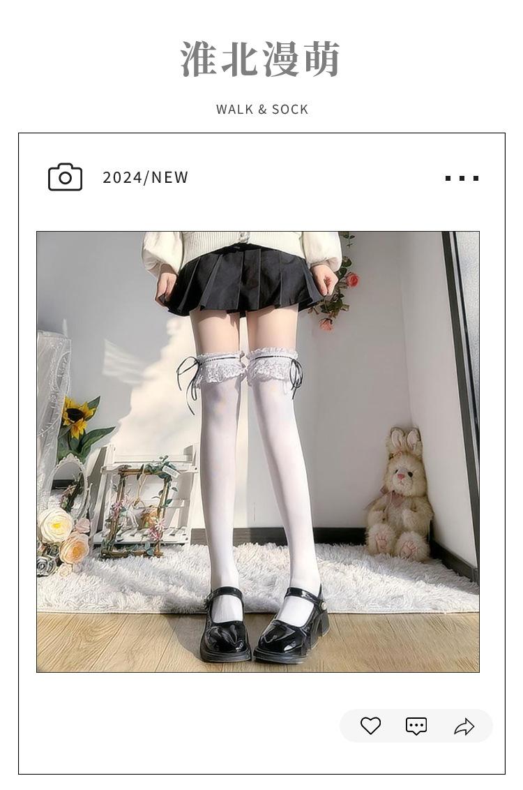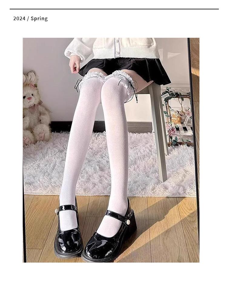 Compra Medias blancas de encaje puro para mujer, calcetines por encima de la rodilla con lazo Lolita, calcetines de algodón JK adelgazantes versátiles. al por mayor en Joom.pro