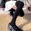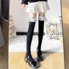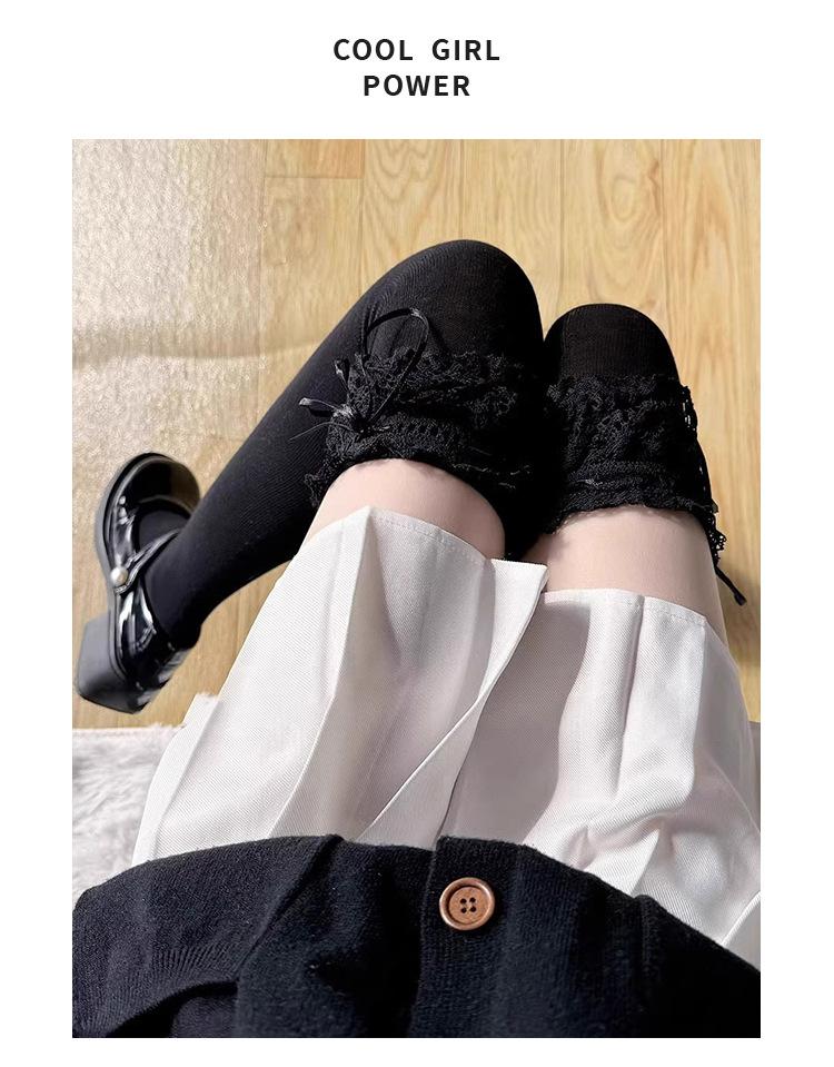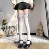 Medias blancas de encaje puro para mujer, calcetines por encima de la rodilla con lazo Lolita, calcetines de algodón JK adelgazantes versátiles.