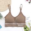 | Nuevo estilo de sujetador deportivo con tirantes finos, de una sola línea, con rosca y almohadillas para el pecho para evitar la exposición de la ropa interior. |