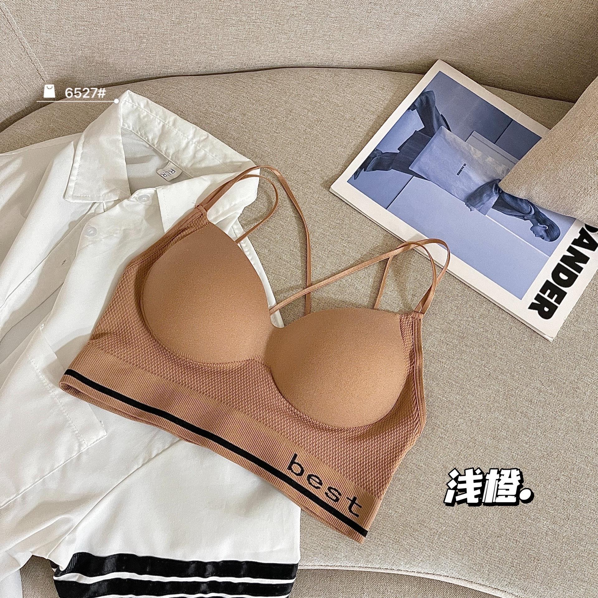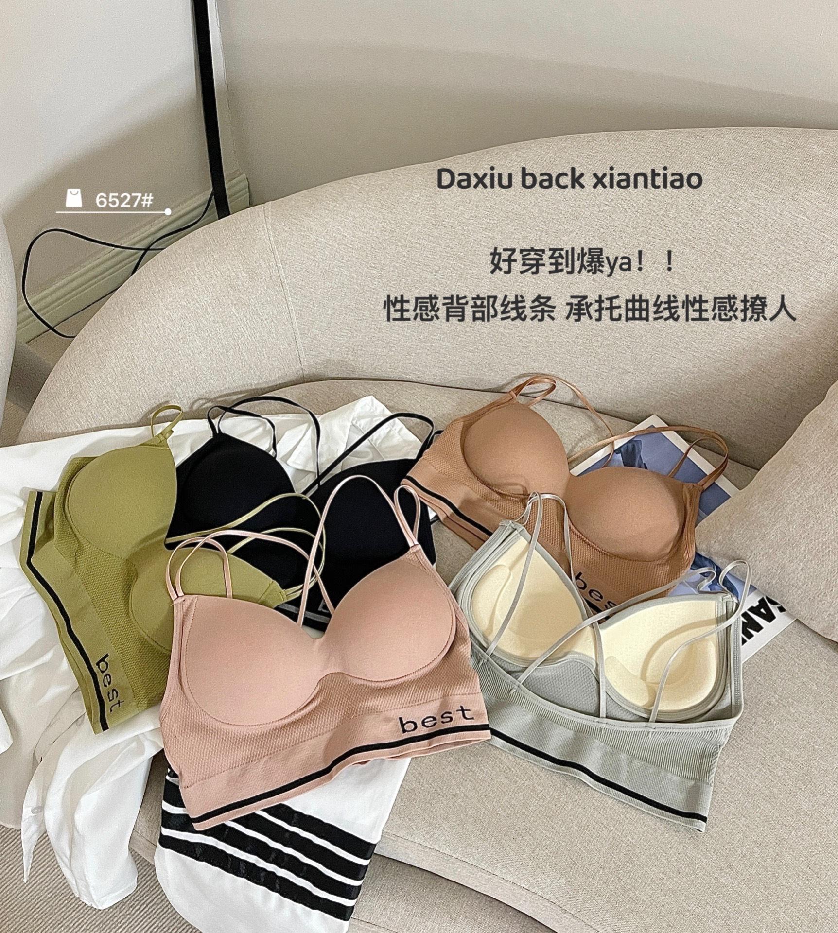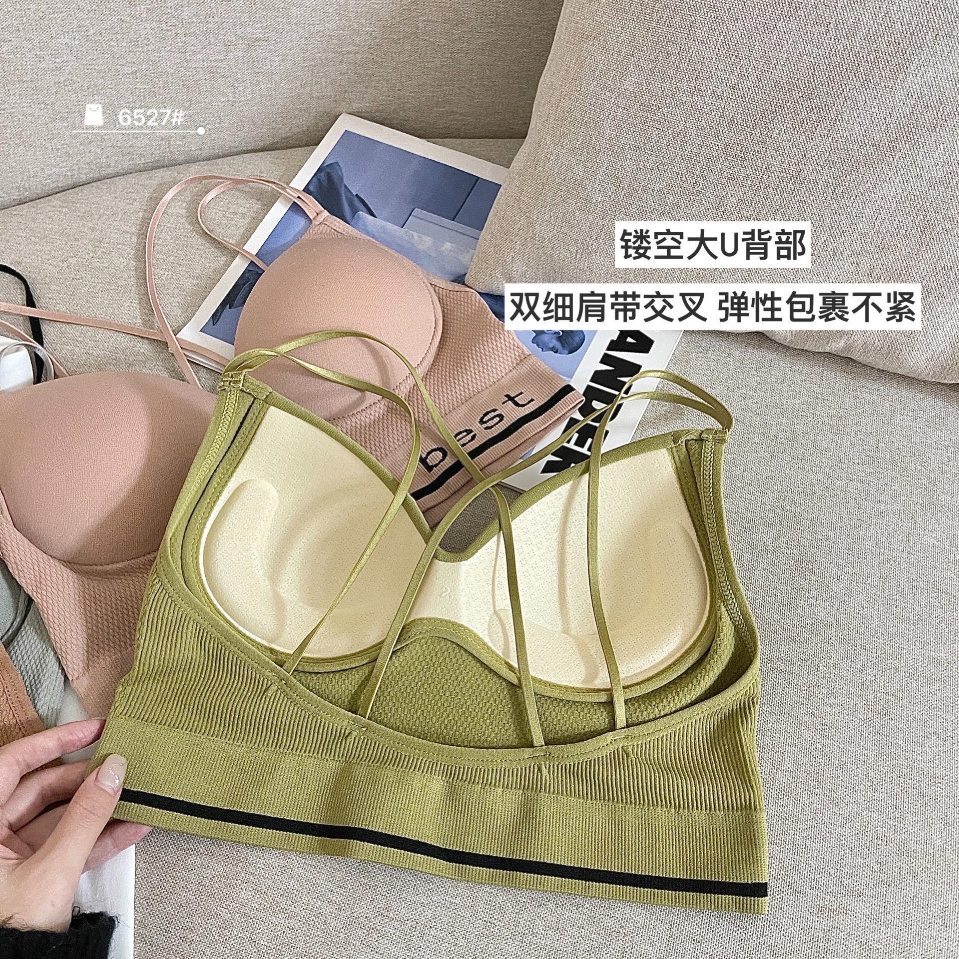 Ropa interior sexy de espalda fina con hombros descubiertos para mujer, sujetador de copa fija con base superior de tubo en el pecho, push up, transpirable y antiexposición