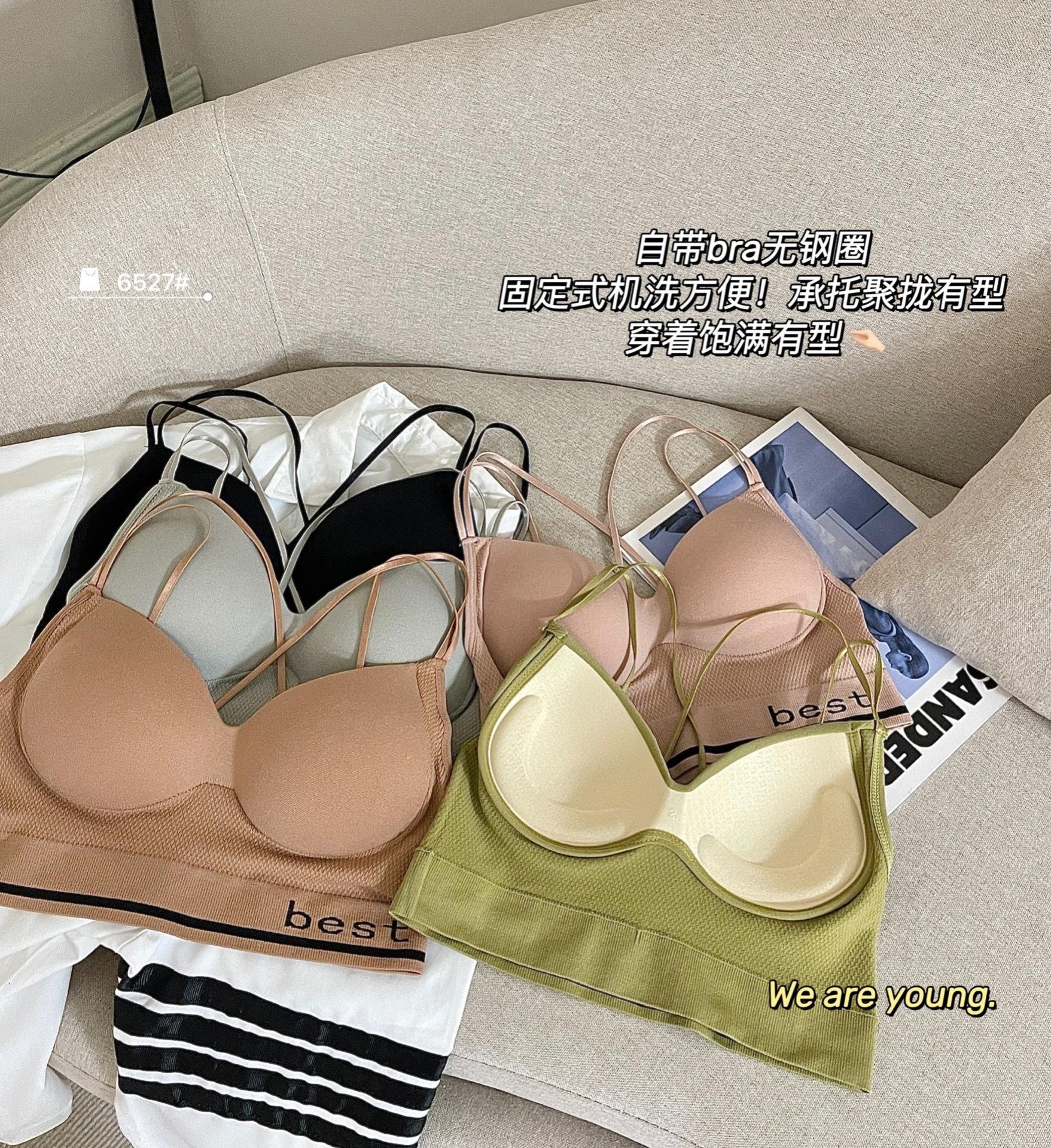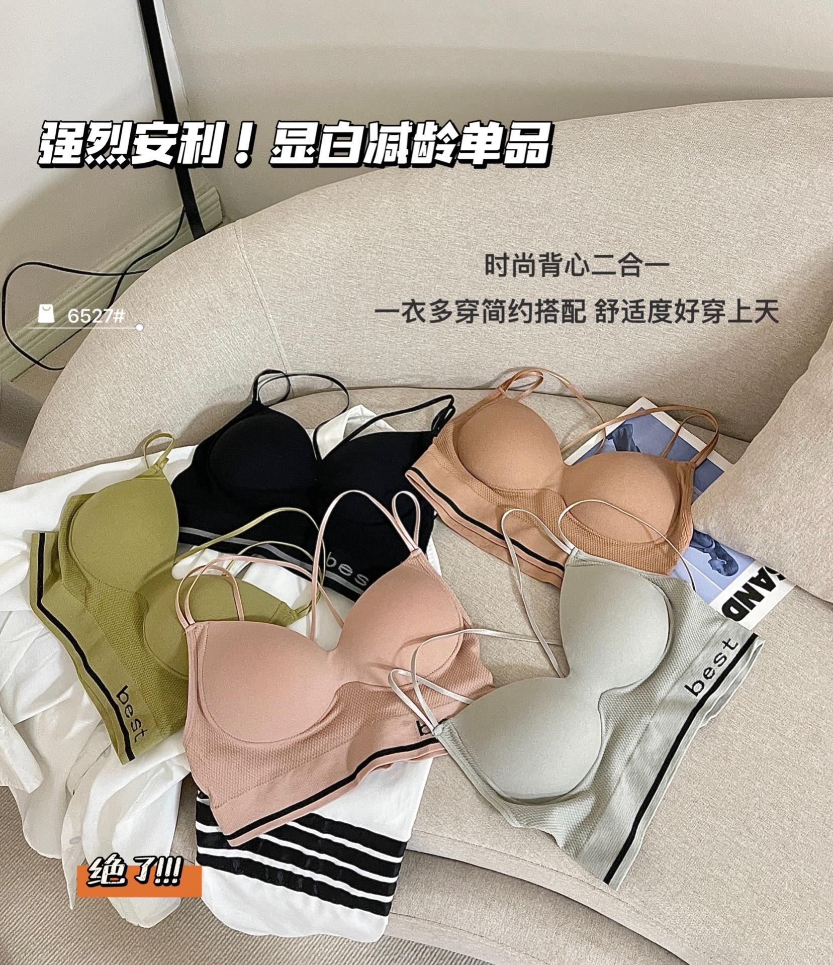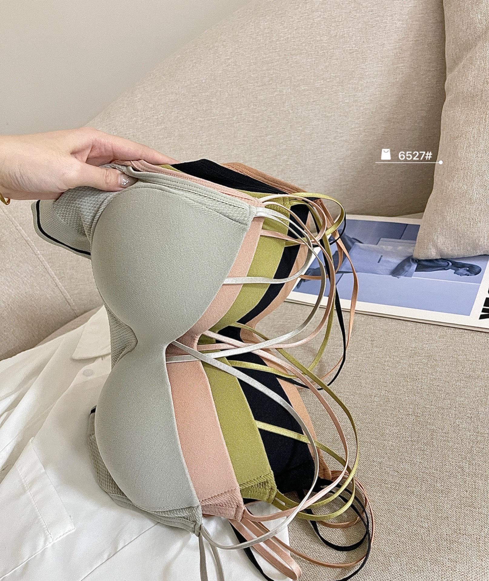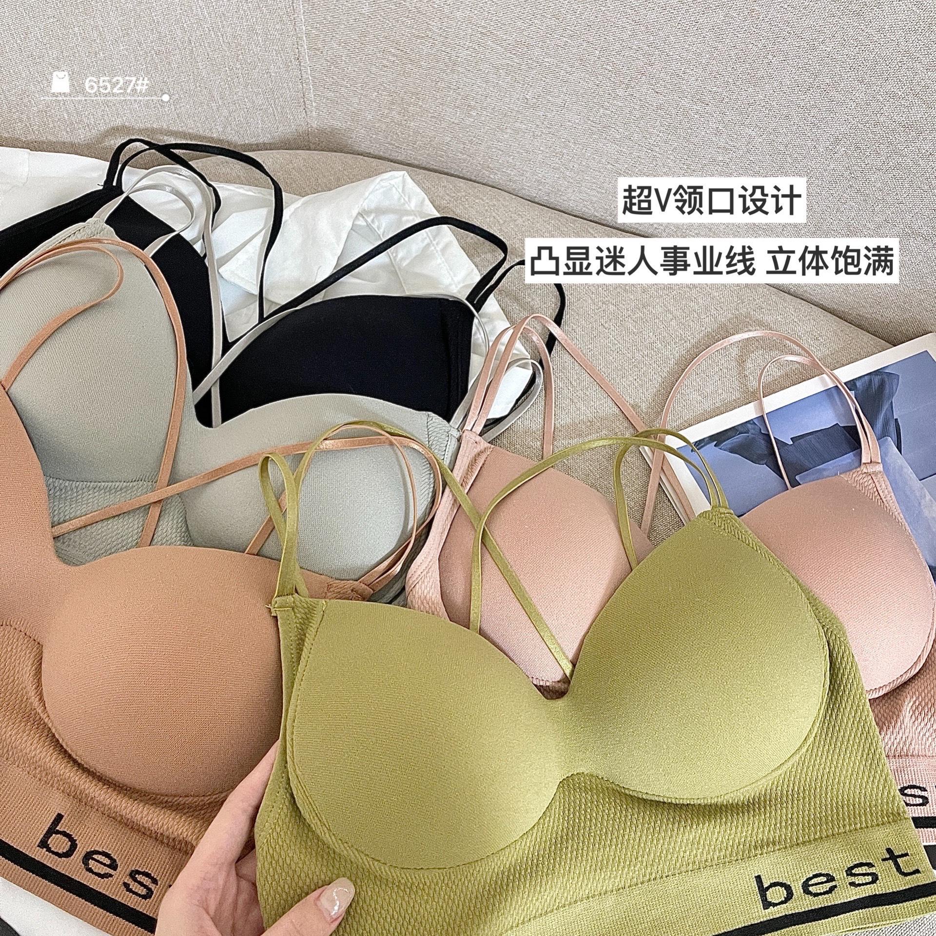 Ropa interior sexy de espalda fina con hombros descubiertos para mujer, sujetador de copa fija con base superior de tubo en el pecho, push up, transpirable y antiexposición