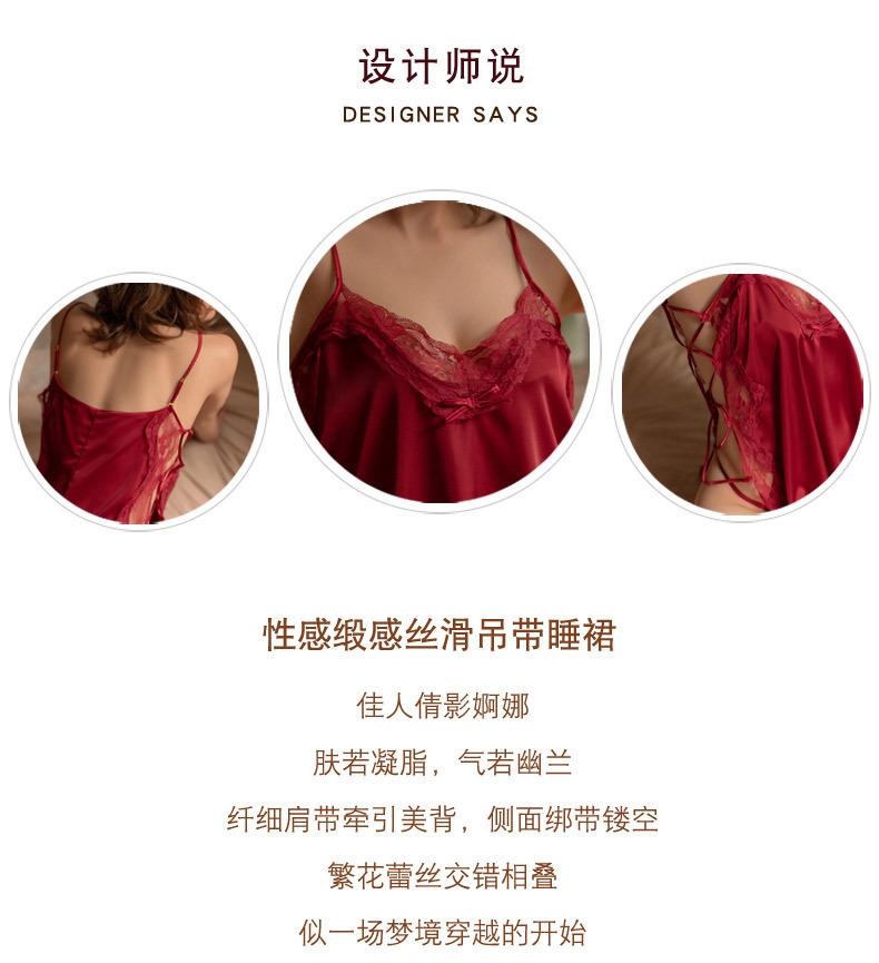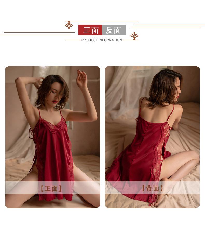 Compra Camisón de lencería sexy con tirantes para mujer, pijama tentador de encaje con abertura lateral, 1206 al por mayor en Joom.pro