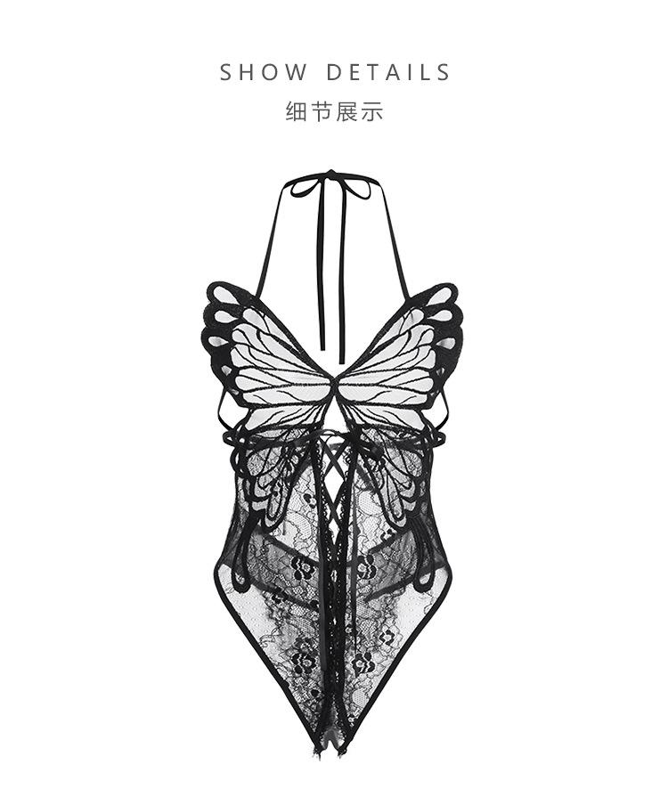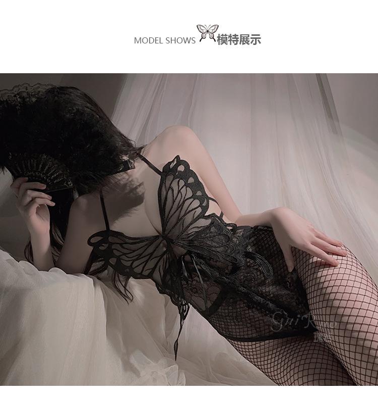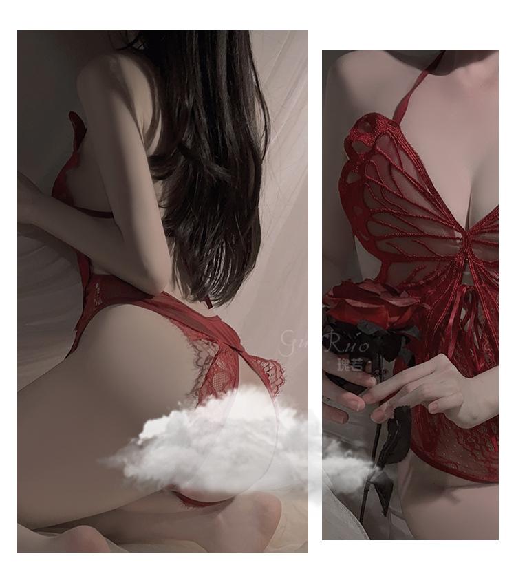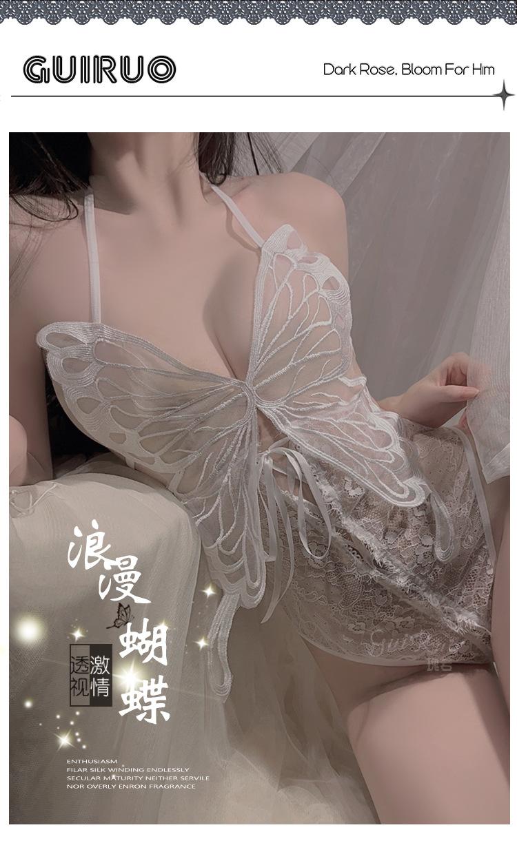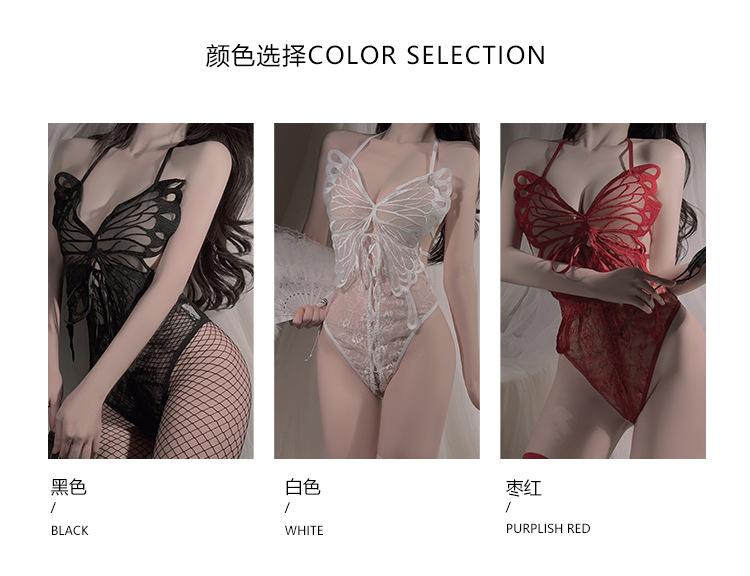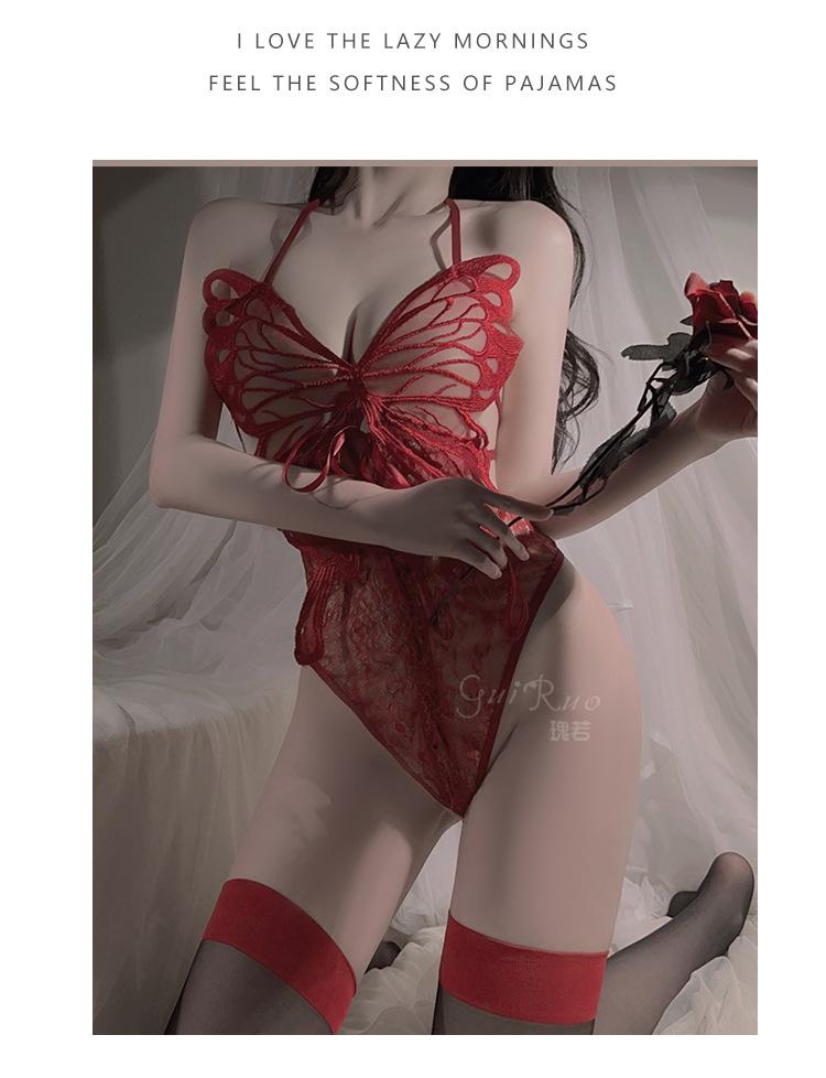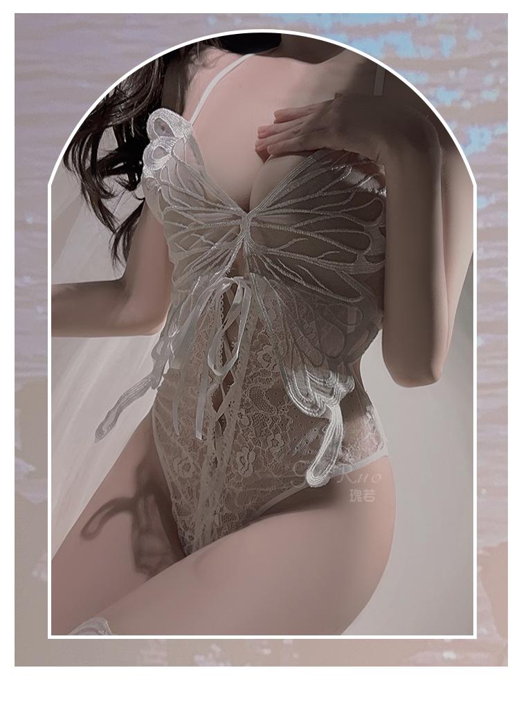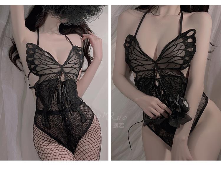 Ruoruo - Lencería sexy con espalda descubierta y tentación, mono de mariposa abierto, traje de uniforme estilo puro deseo para mujer 4009