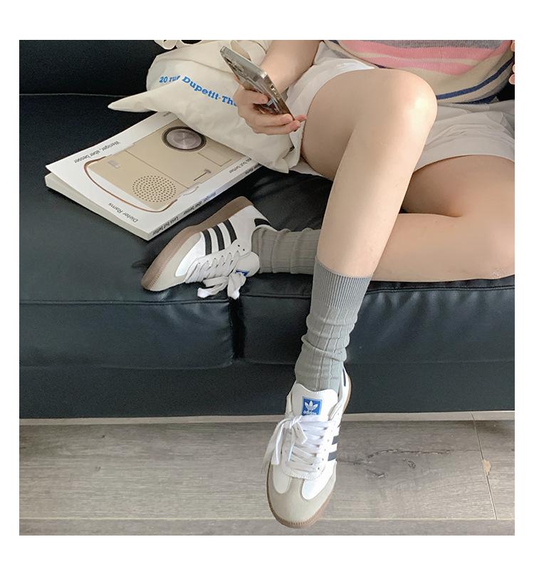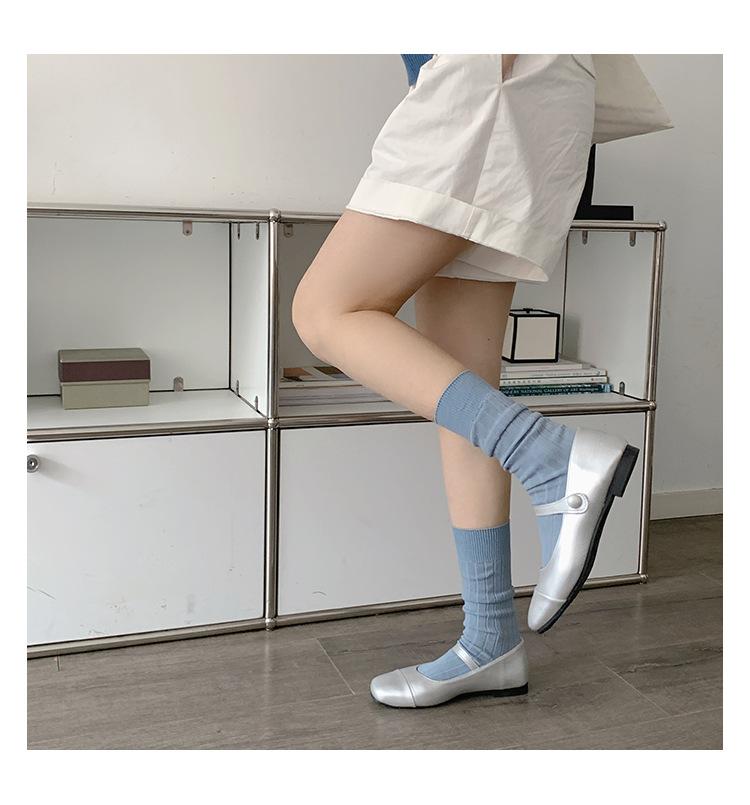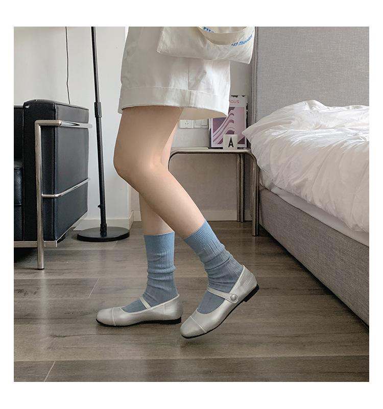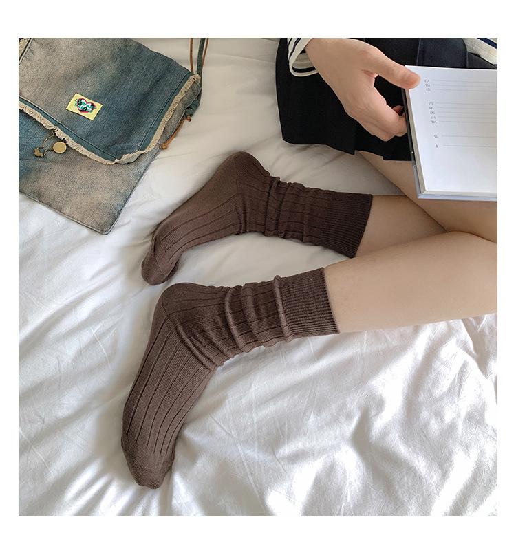 Calcetines de mujer hasta media pantorrilla, otoño e invierno, calcetines japoneses de algodón de color puro, medias sencillas, primavera y otoño, calcetines de confinamiento sin hueso.
