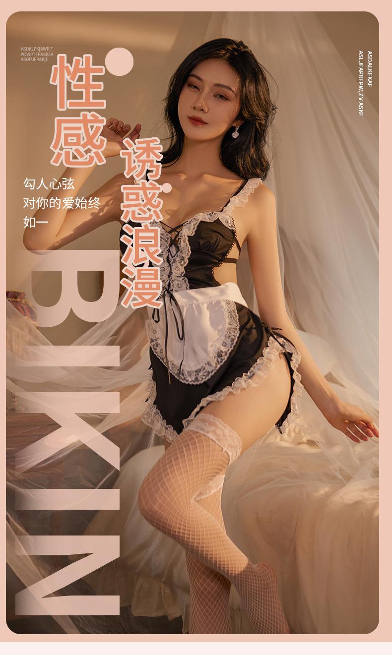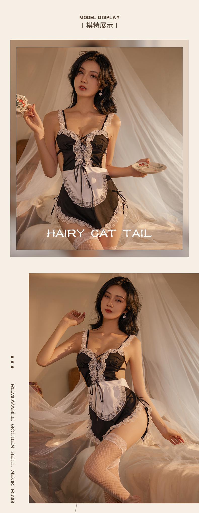 Lencería sexy de sirvienta, tentación sexy, uniforme de sirvienta con entrepierna abierta, cama caliente, traje de pasión, encanto de medianoche, puro deseo.