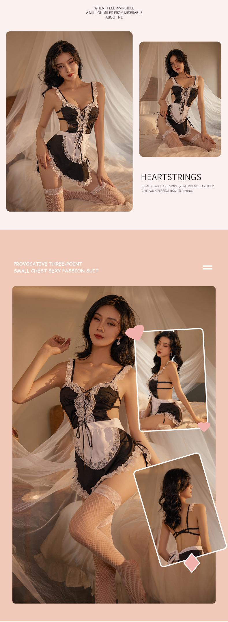 Lencería sexy tentación de sirvienta entrepierna uniforme sirvienta traje de pasión de cama caliente encanto de medianoche deseo puro
