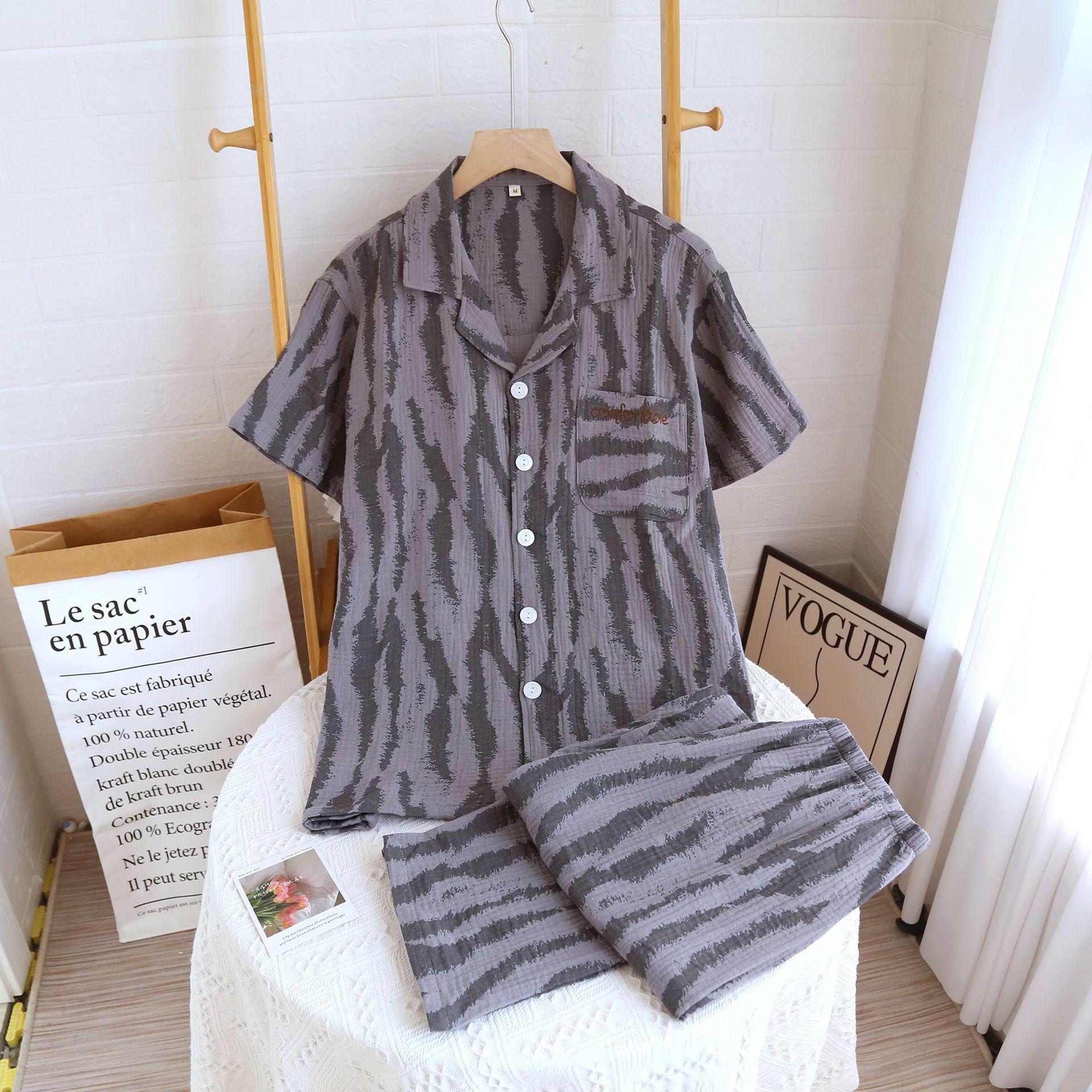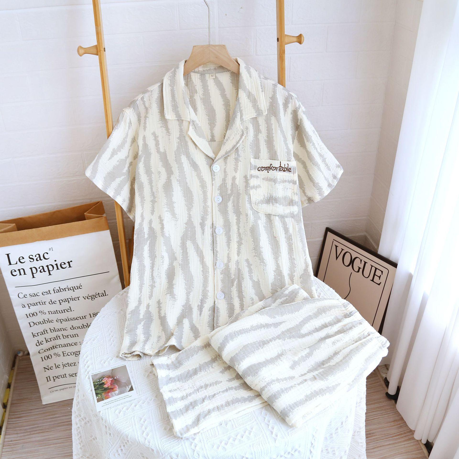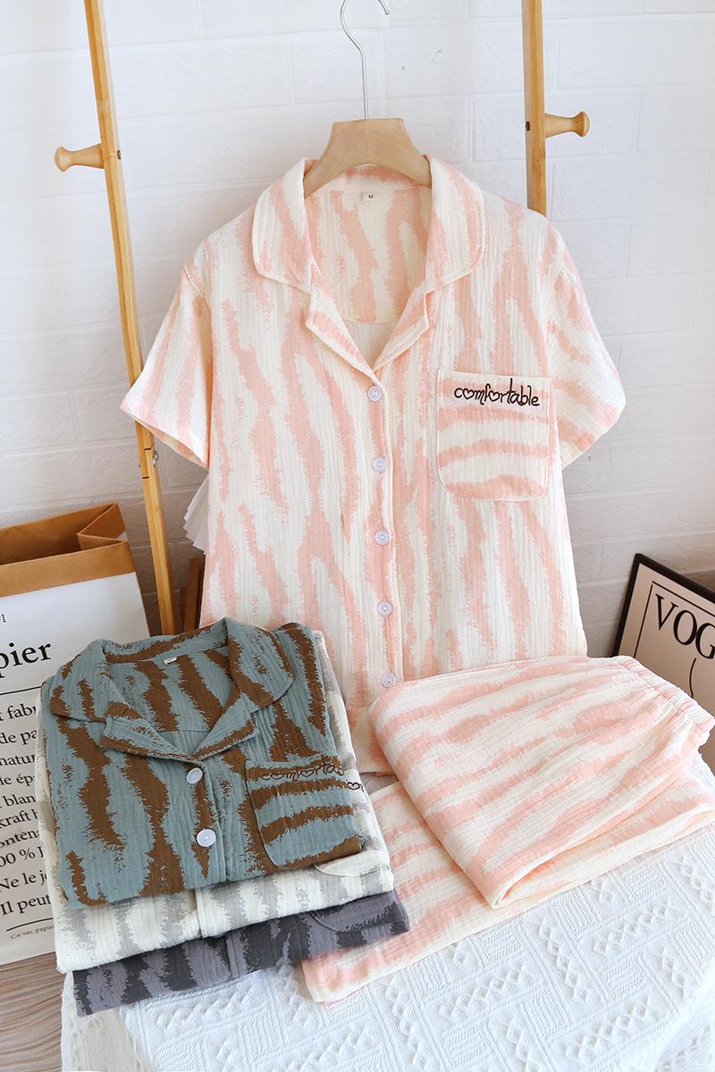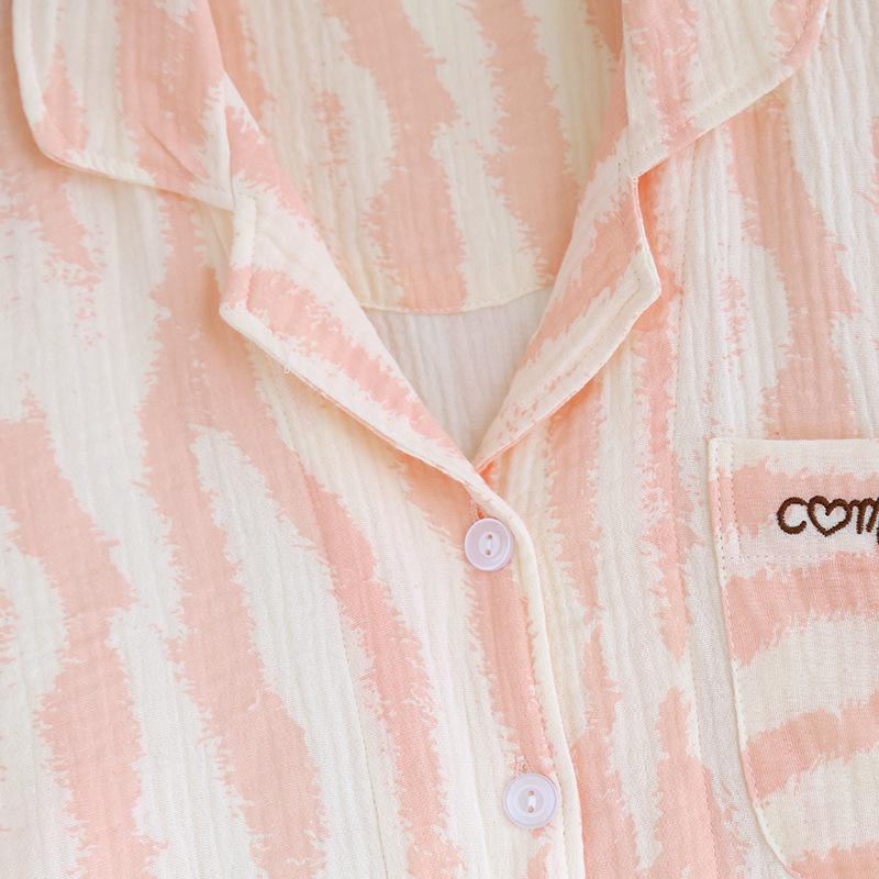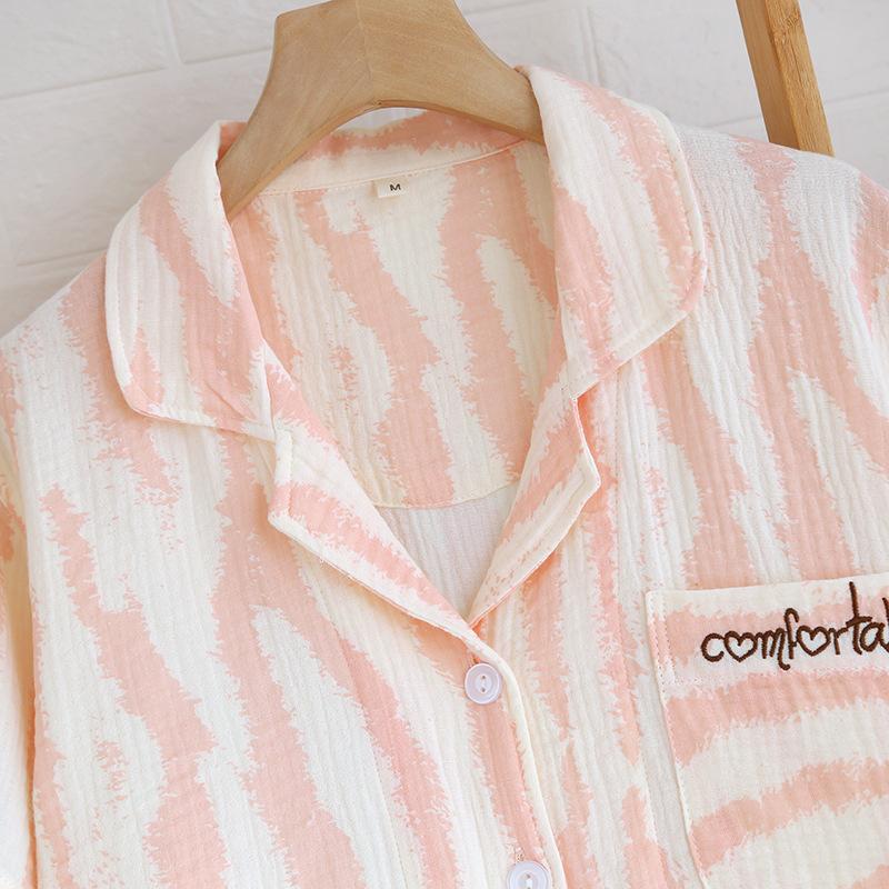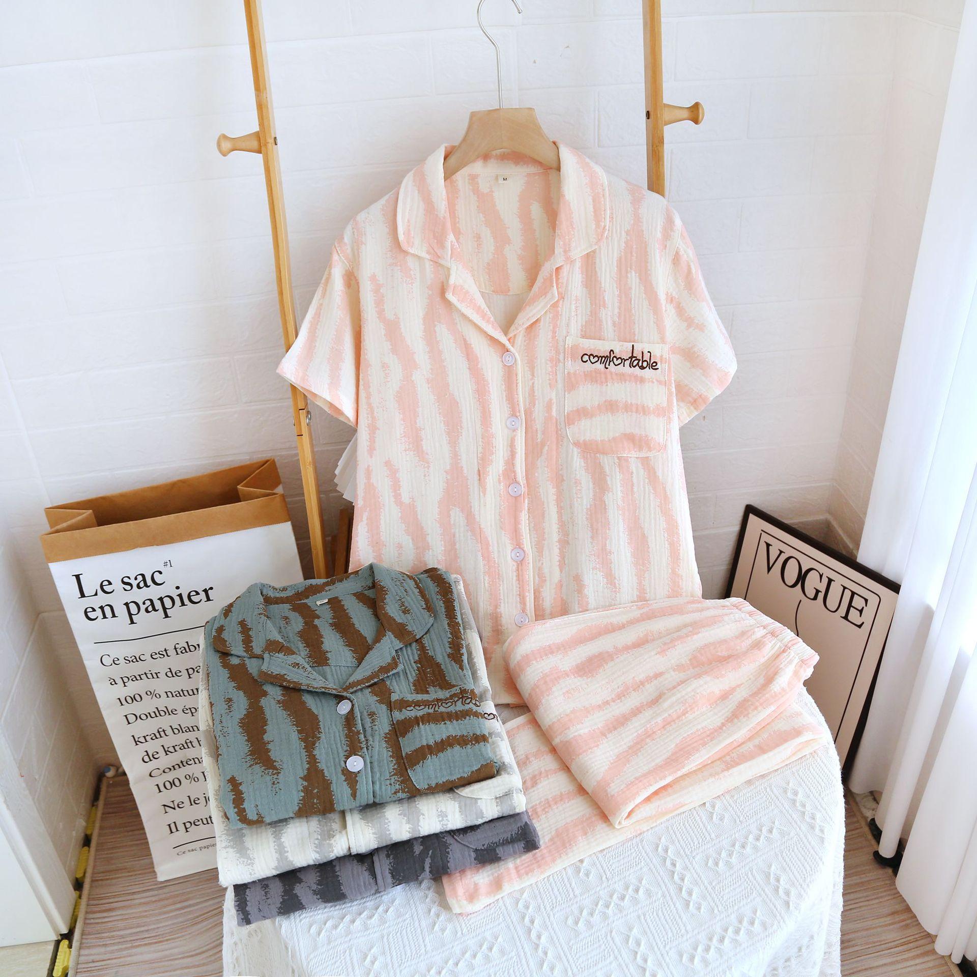 Traje Nuevo de Primavera y Verano para Pareja Estilo Fresco Casual Sencillo Pantalones de Manga Corta Algodón Crepé Ropa Sencilla para el Hogar