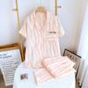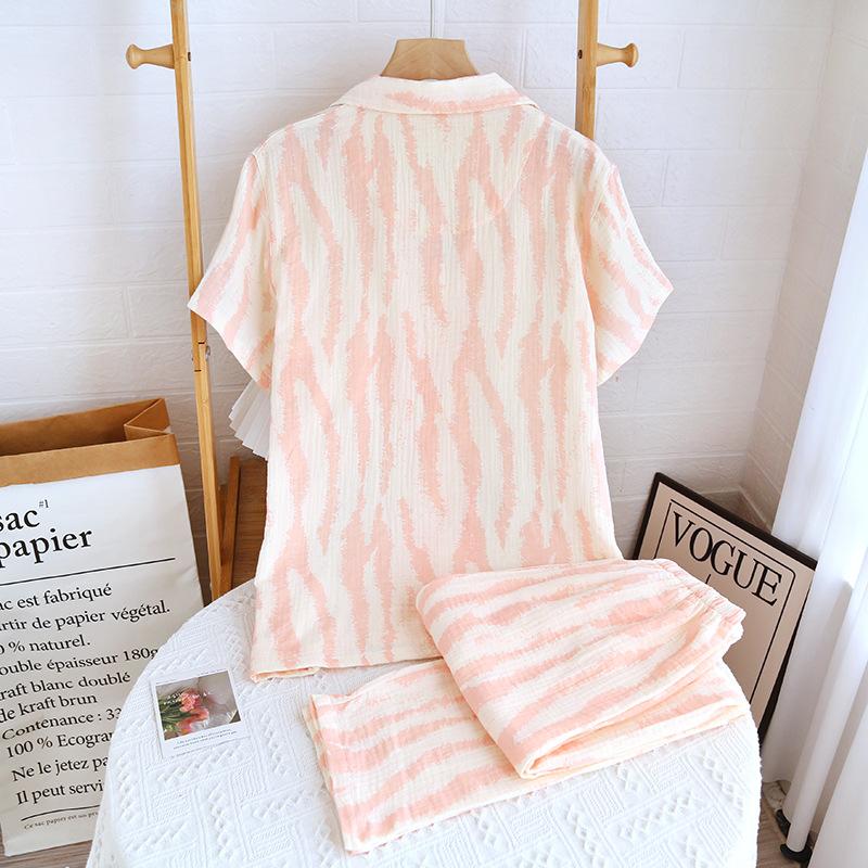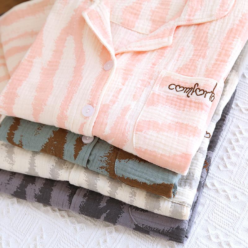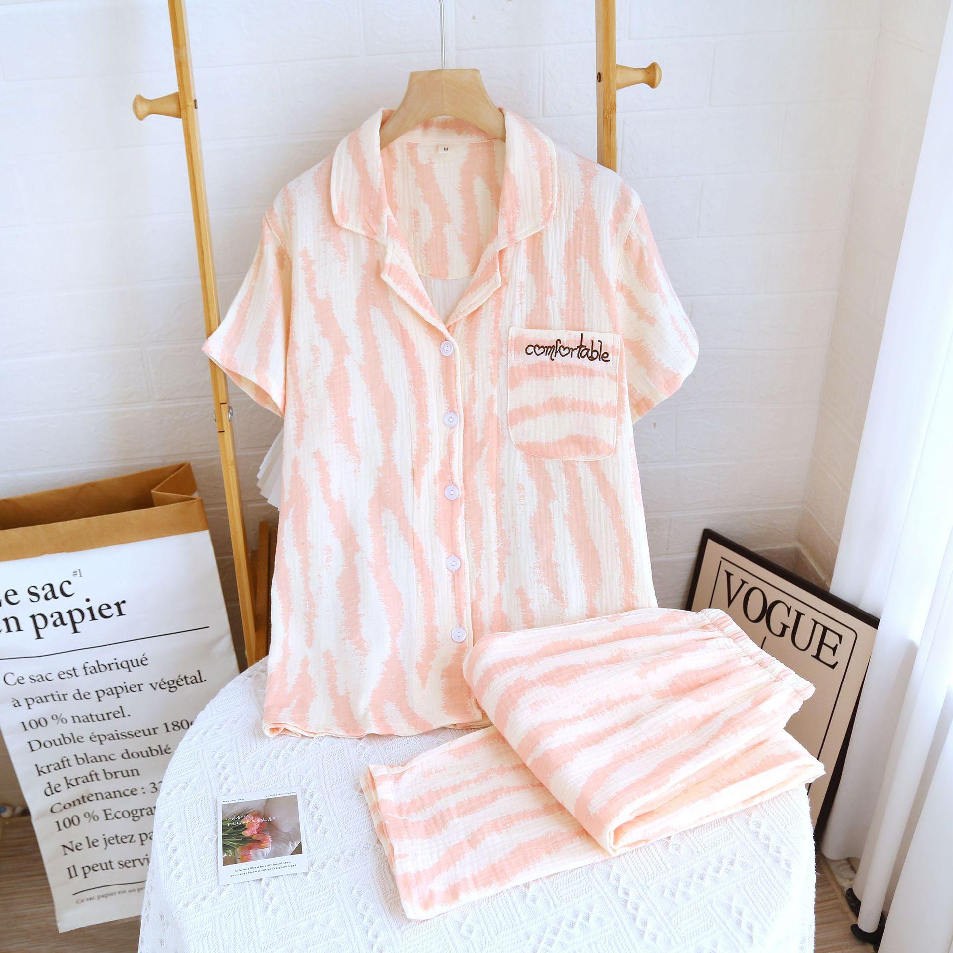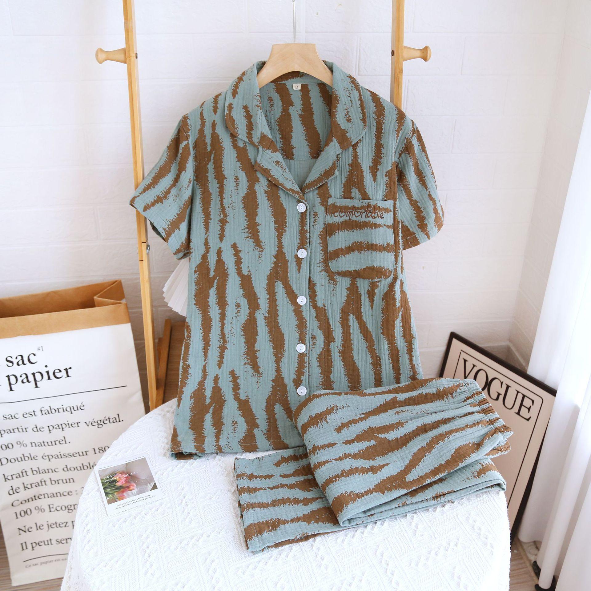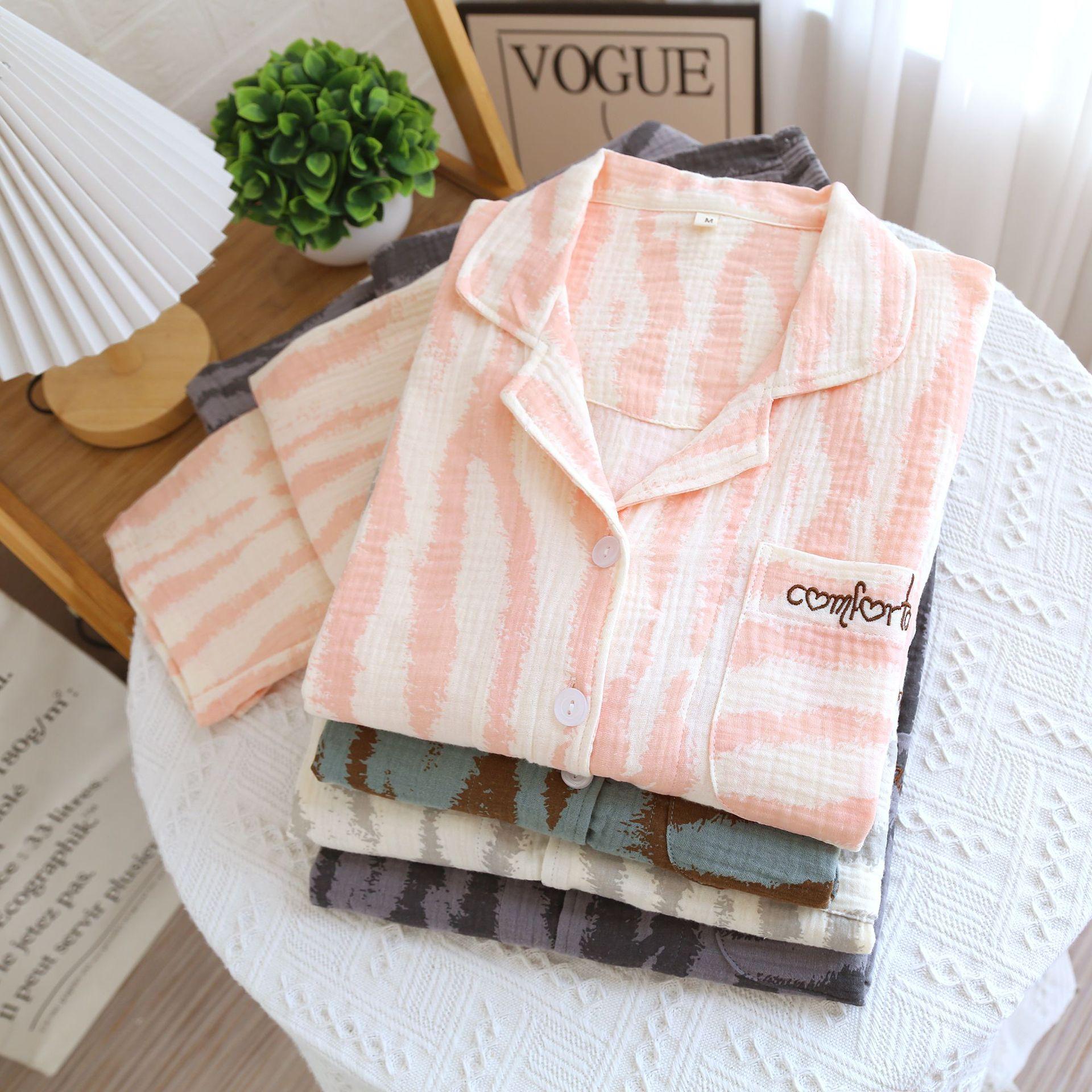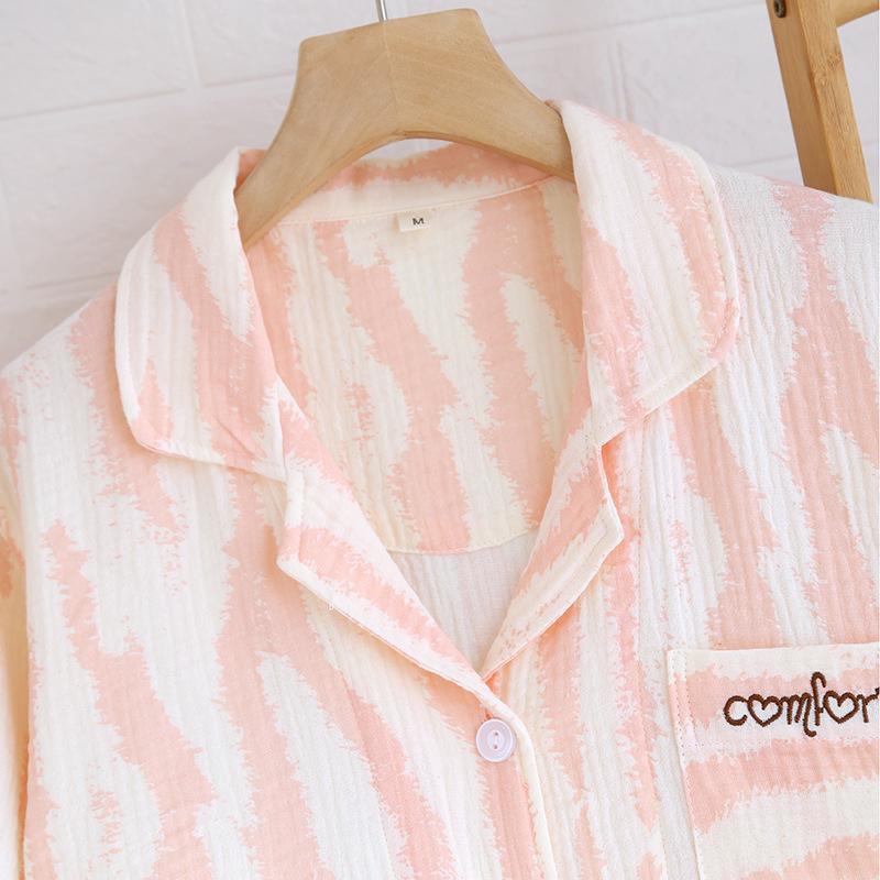 Traje Nuevo de Primavera y Verano para Pareja Estilo Fresco Casual Sencillo Pantalones de Manga Corta Algodón Crepé Ropa Sencilla para el Hogar
