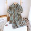 Crepe Zebra Women's Short Long Set-Green