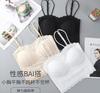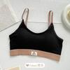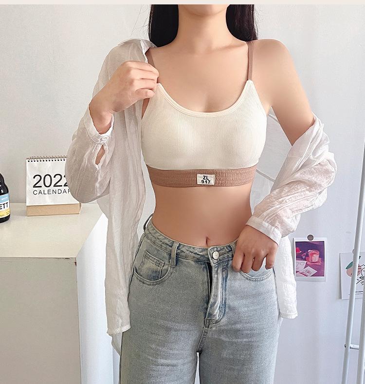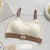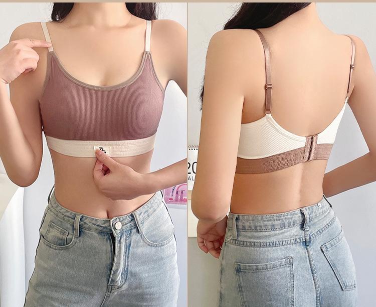 Ropa interior de espalda descubierta sin tirantes de color contrastante para mujer, sin aro, fruncido, con escote en la espalda, copa fija, fina, transpirable, de una pieza, envolvente para el pecho