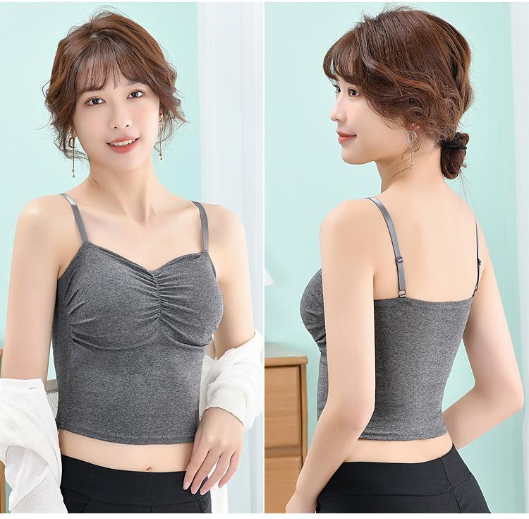 Camisola de espalda hermosa y popular en Internet, cinturón de algodón puro con almohadilla para el pecho, base interior anti-caminar de Spice Girl, prenda exterior larga, top cruzado para el pecho.