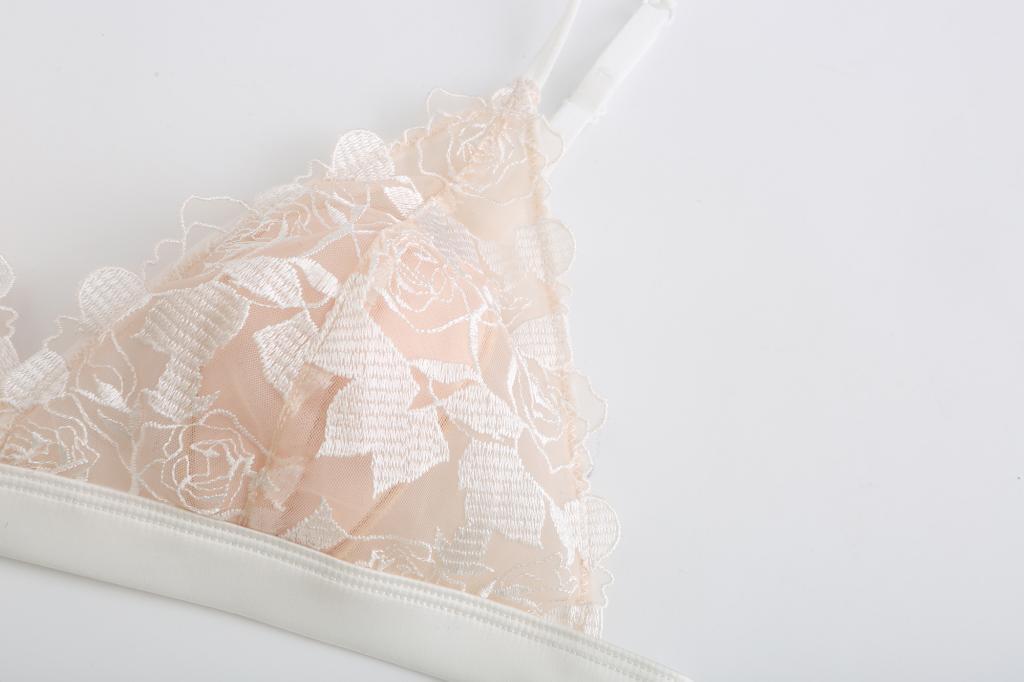 | Venta directa de fábrica, conjunto de ropa interior sexy francesa para mujer, sujetador de encaje fruncido transpirable de algodón fino, sujetador de talla grande |