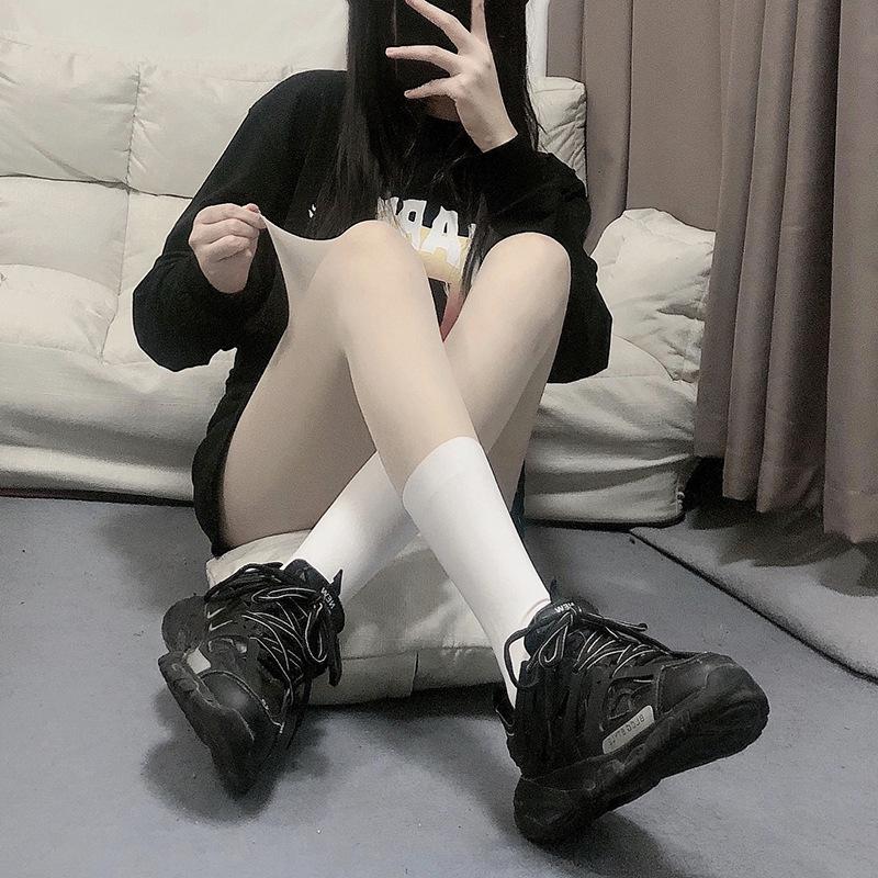 Medias de seda blancas con costuras para mujer, finas, largas, de tubo, con espinillas falsas, hasta la rodilla, de verano, negras, de seda JK, sexys