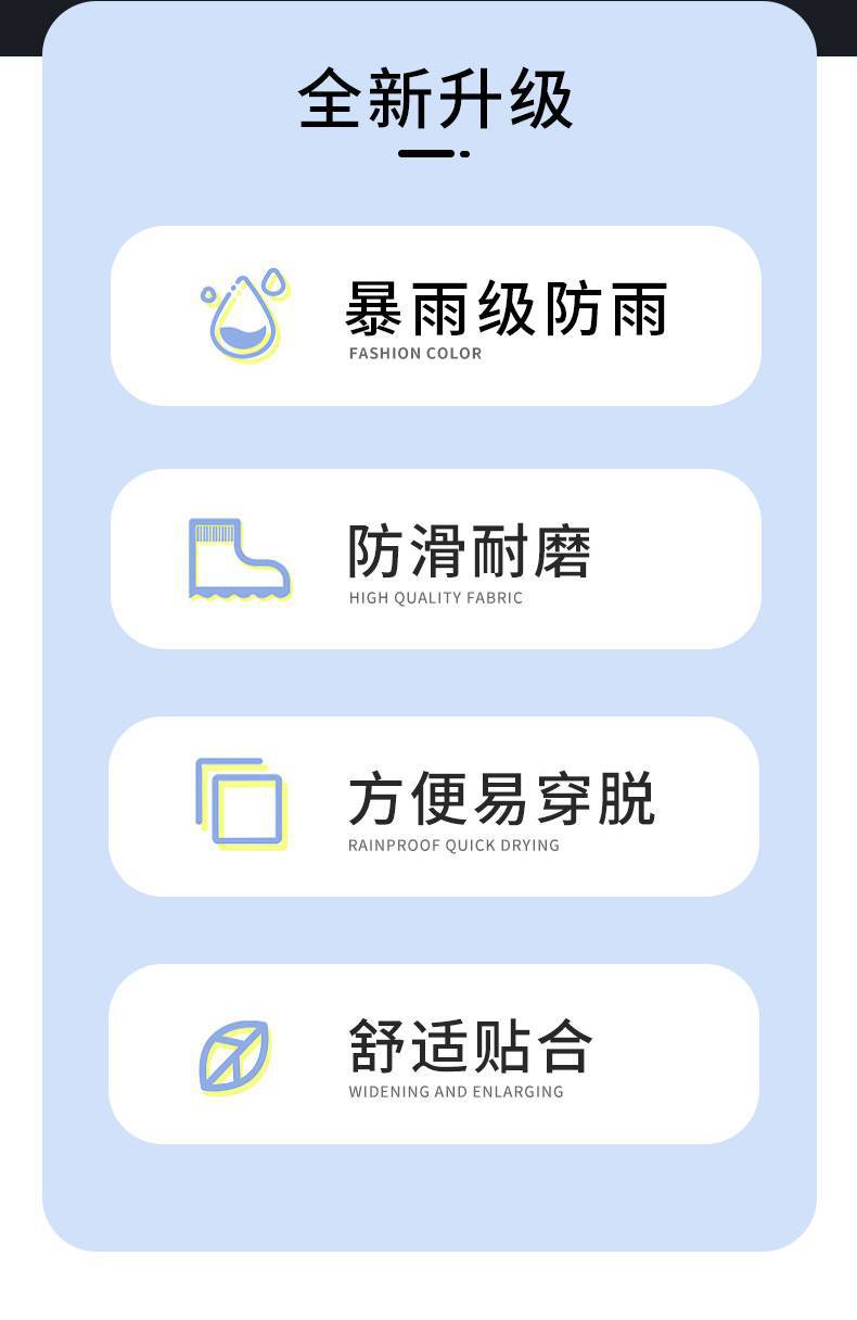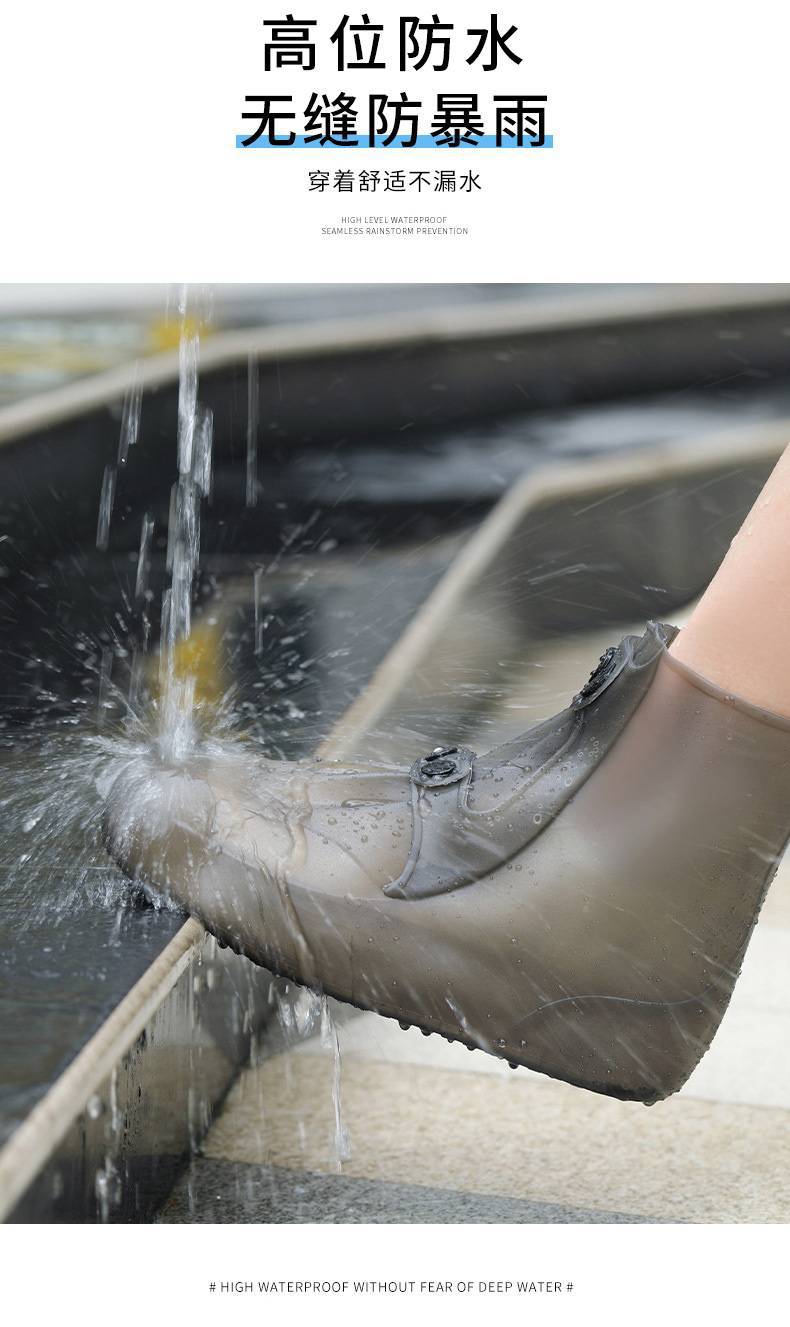 Punto de venta: Nueva actualización, gran apertura en forma de abanico con doble botonadura, fácil de poner y quitar, resistente al agua y a la lluvia sin costuras, suela gruesa resistente al desgaste con un agarre más fuerte, pequeño y portátil, suave y fácil de guardar.
