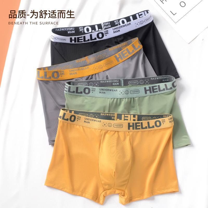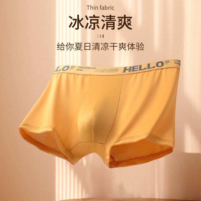 Ropa interior para hombre, de seda de hielo, de verano, fina, de cuatro esquinas, de algodón puro, transpirable, sin marcas, tipo bóxer.