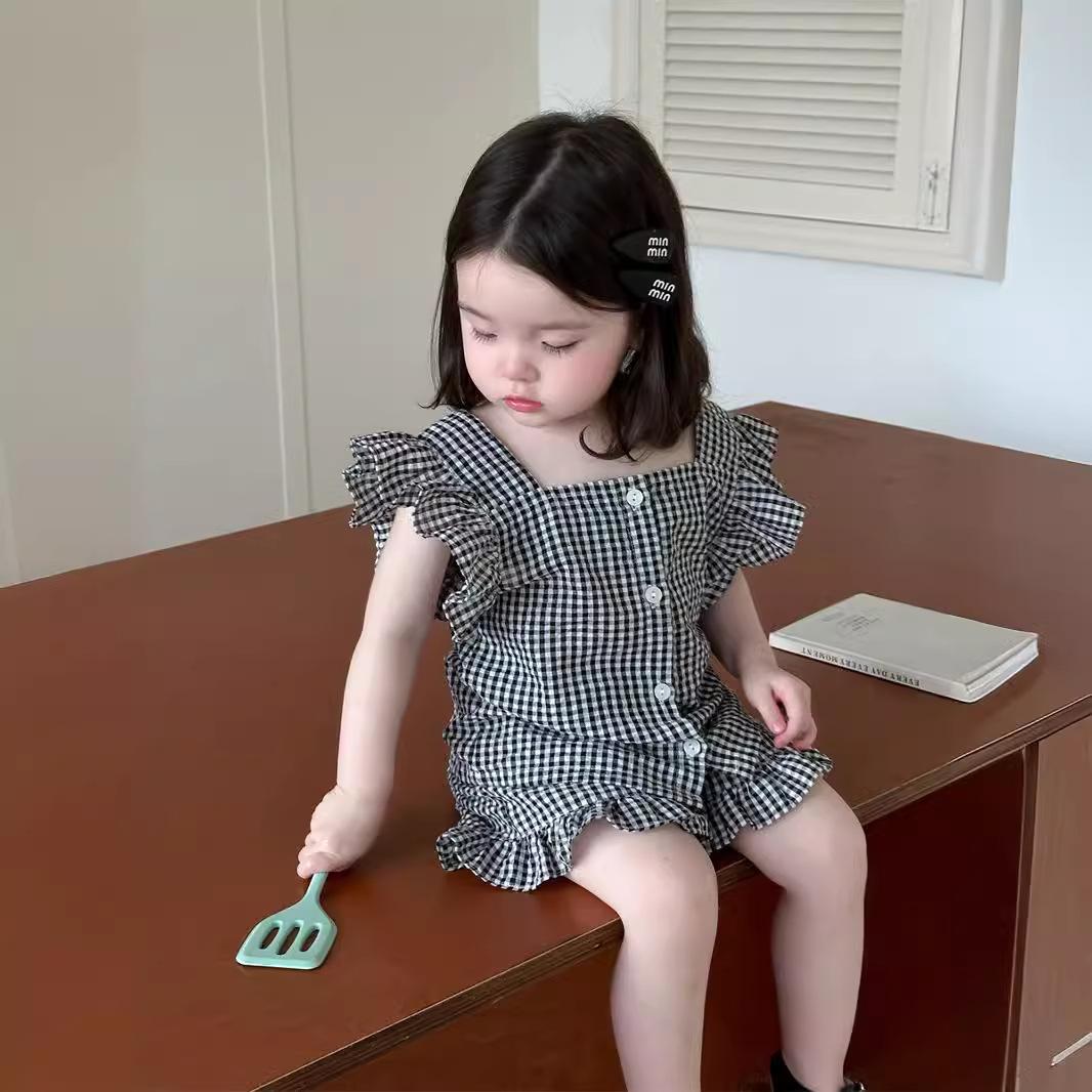 Traje para Niñas Verano Delgado 2025 Nuevo Estilo Coreano Ropa para Niños Ropa para Bebé Ropa de Verano Traje de Cuadros para Niños