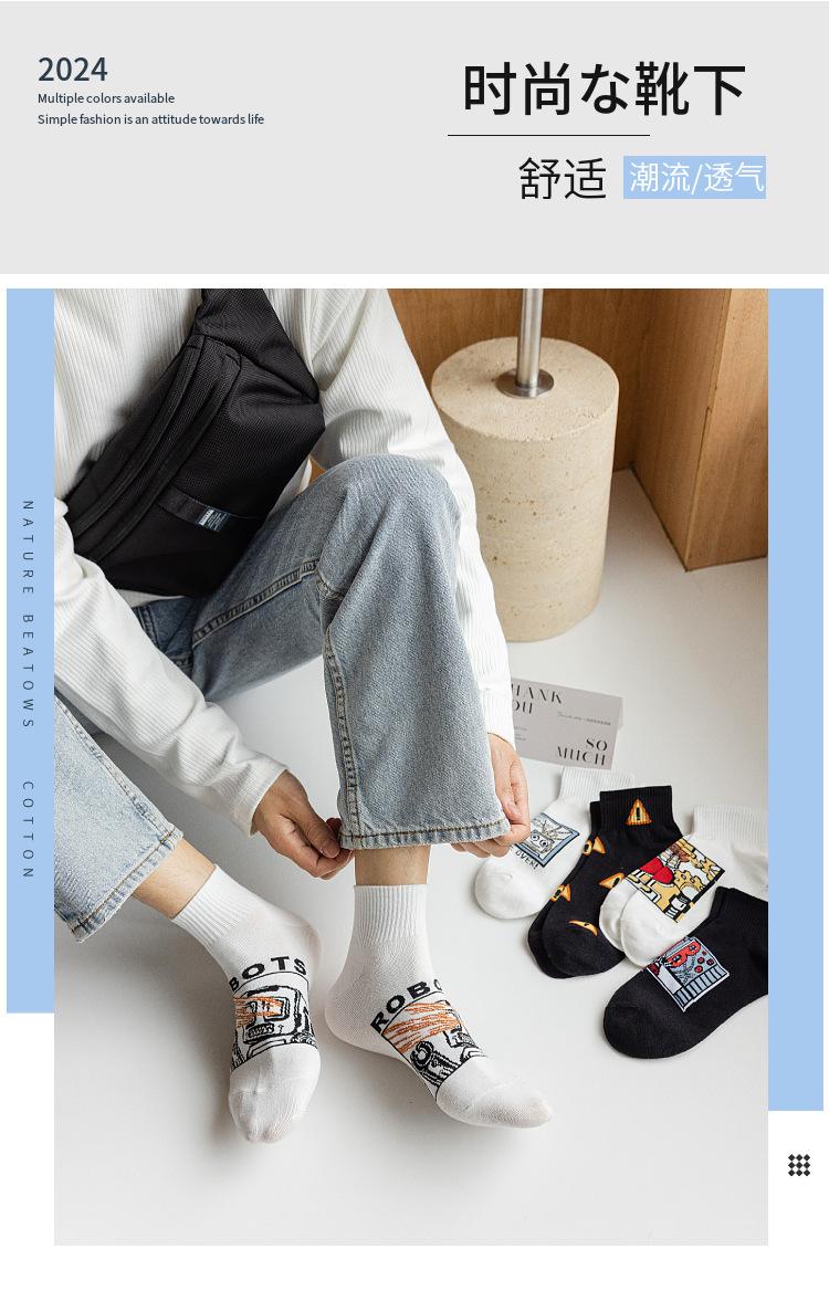 Calcetines de Moda de Tubo Corto para Hombre Delgados de Primavera y Verano Moda Urbana Deportivos de Algodón para Hombre Transpirables Absorbentes de Sudor Cómodos Calcetines de Moda para Hombre